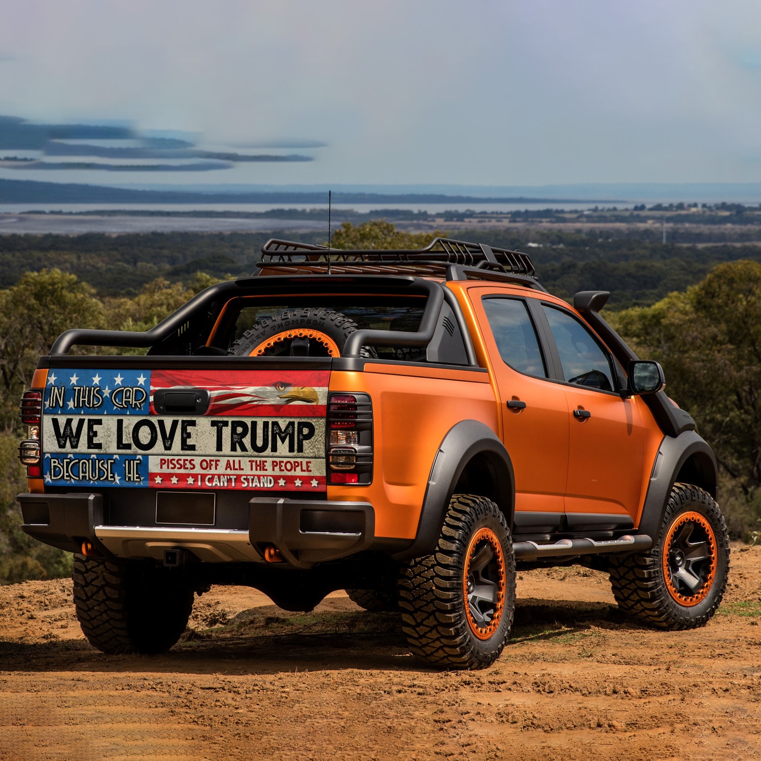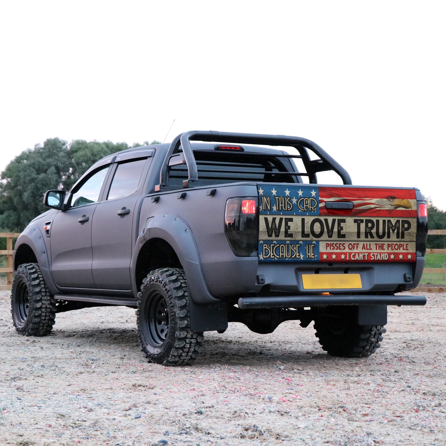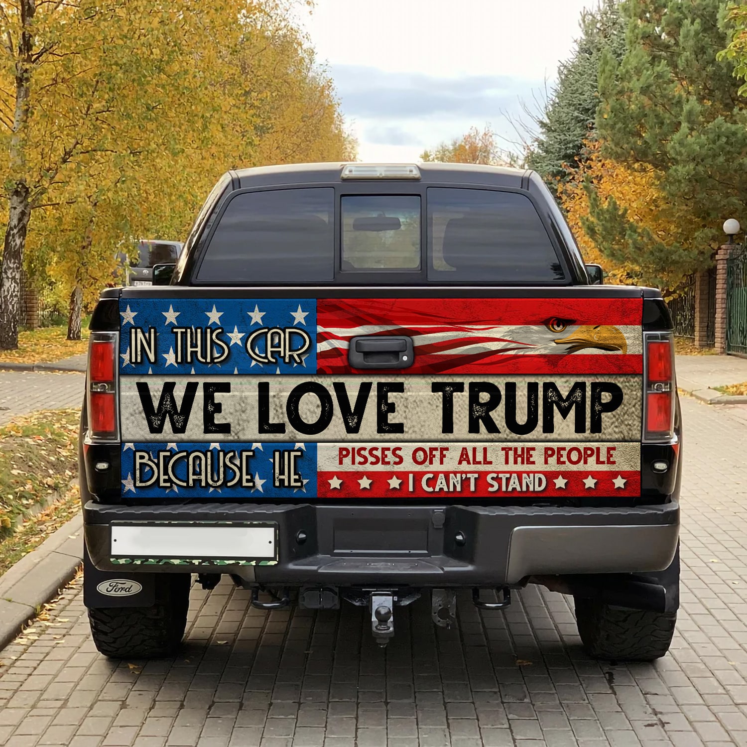 Let’s Shop In This Car We Love Trump Because He Pisses Off All The People I Can’t Stand Truck Tailgate Decal Sticker Wrap!