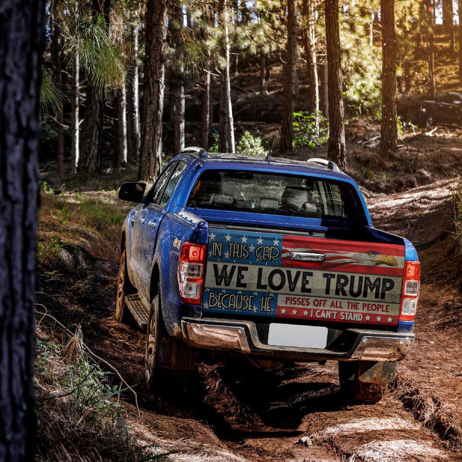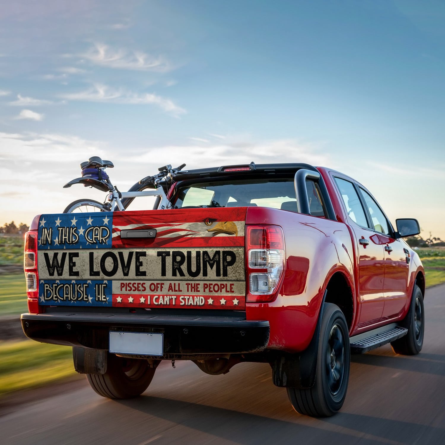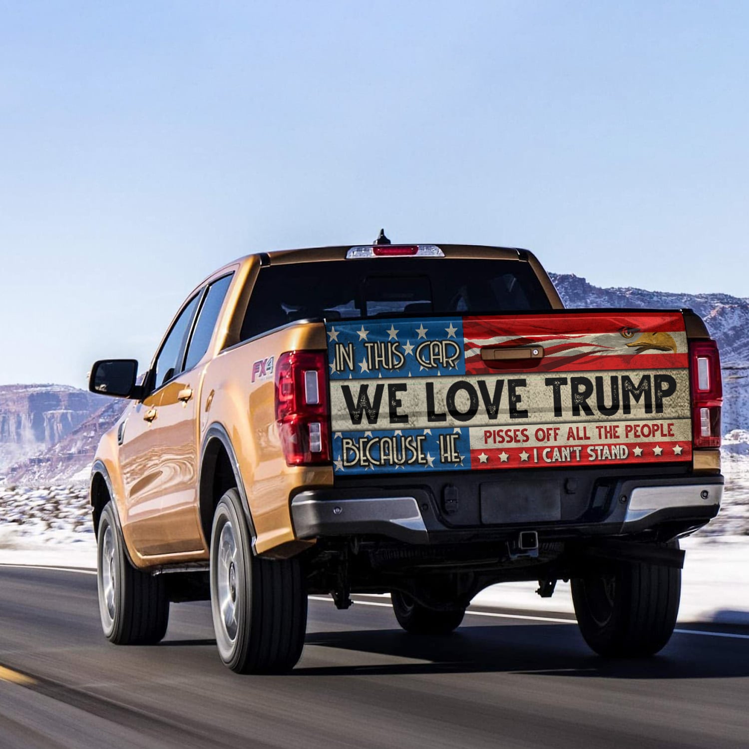 Let’s Shop In This Car We Love Trump Because He Pisses Off All The People I Can’t Stand Truck Tailgate Decal Sticker Wrap!