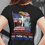 Are you spending too much time to find creative merchandise for you or suitable & special gifts for your mommy, your daddy, your son, your daughter, your children, your friends or someone you love? The struggle is over because we have various We Don’t Know Them All But We Owe Them All Print On Back T-shirt, Veteran Shirt, Patriotic Shirt, Memorial Day Shirt, Fallen Soldier Shirt, Memorial American Patriot Shirt, which will make perfect presents for your beloveds. In order to make your present stand out, we have created lots of unique and awesome customized photo gifts & personalized designs.