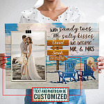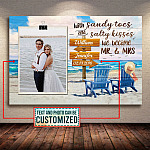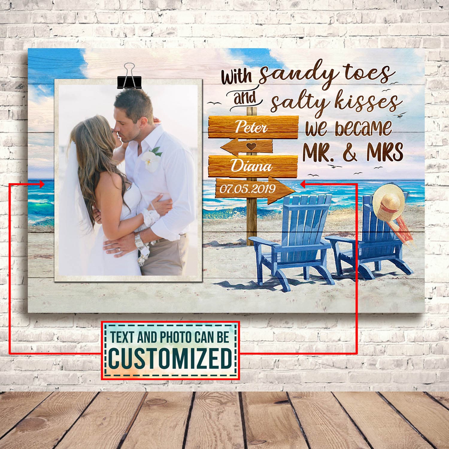 Let’s Shop Custom Photo With Sandy Toes And Salty Kisses We Became Mr And Mrs Framed Canvas – Unframed Poster – Wedding Anniversary Gift!