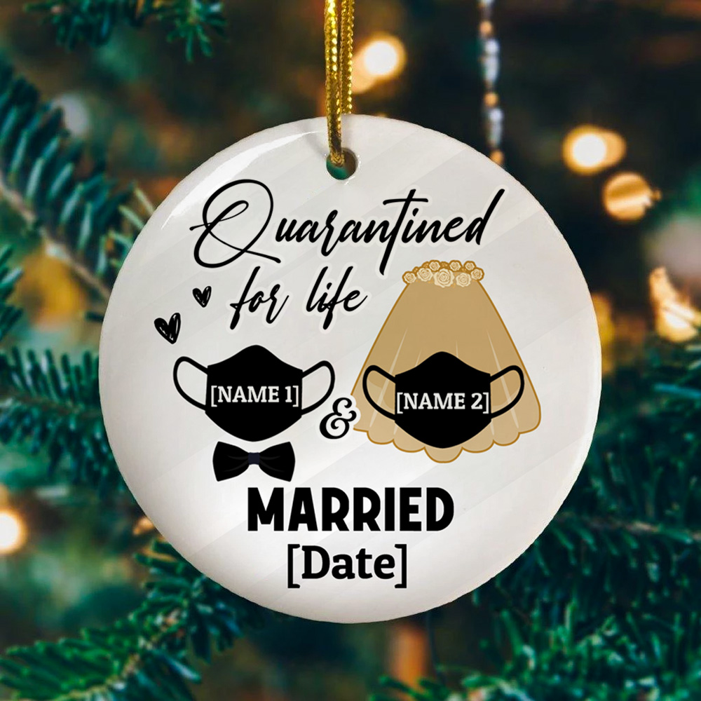 Let’s Shop Personalized Quarantined For Life Married Masked Christmas Circle Ornament – Holiday Pandemic Wedding Gift!