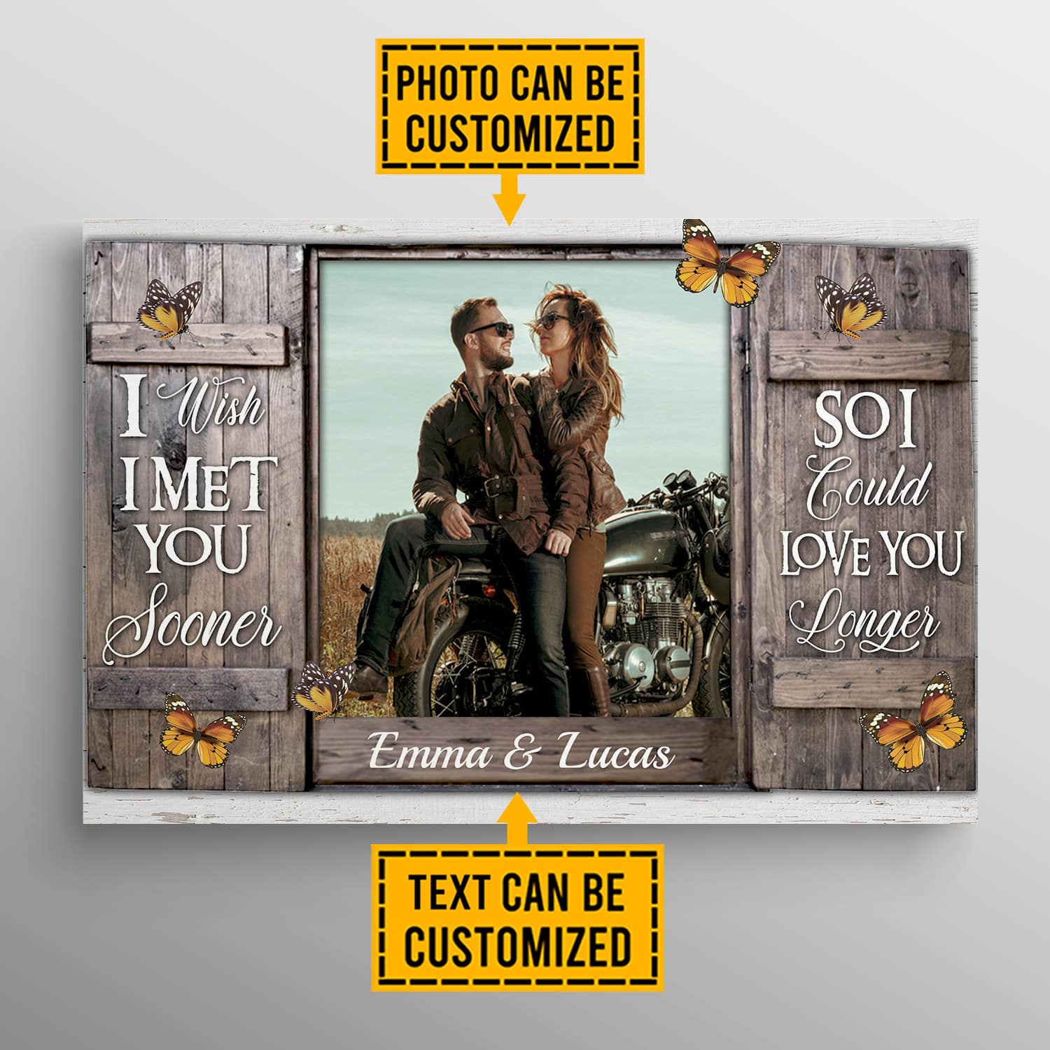 Let’s Shop Personalized Photo I Wish I Met You Sooner So I Could Love You Longer Widow Framed Canvas – Unframed Poster!