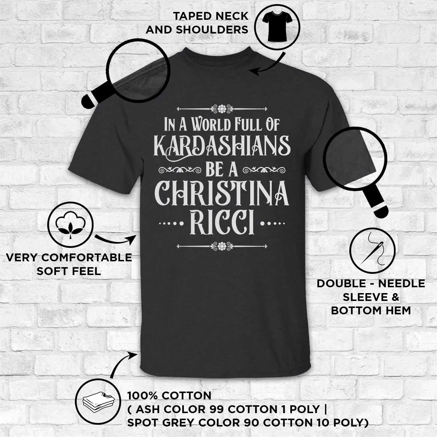 Are you spending too much time to find creative merchandise for you or suitable & special gifts for your mommy, your daddy, your son, your daughter, your children, your friends or someone you love? The struggle is over because we have various In a World Full of Kardashians Be a Christina Ricca Shirt, Wednesday Movie Shirt, in A World Full of Shirt, Be a Christina Cicci Shirt, in A World Full of Kardashians Shirt which will make perfect presents for your beloveds. In order to make your present stand out, we have created lots of unique and awesome customized photo gifts & personalized designs.
