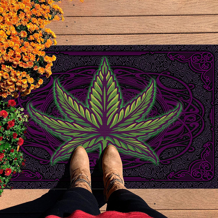Let’s Shop Cannabis Leaf Welcome Indoor Outdoor Decorative Doormat!