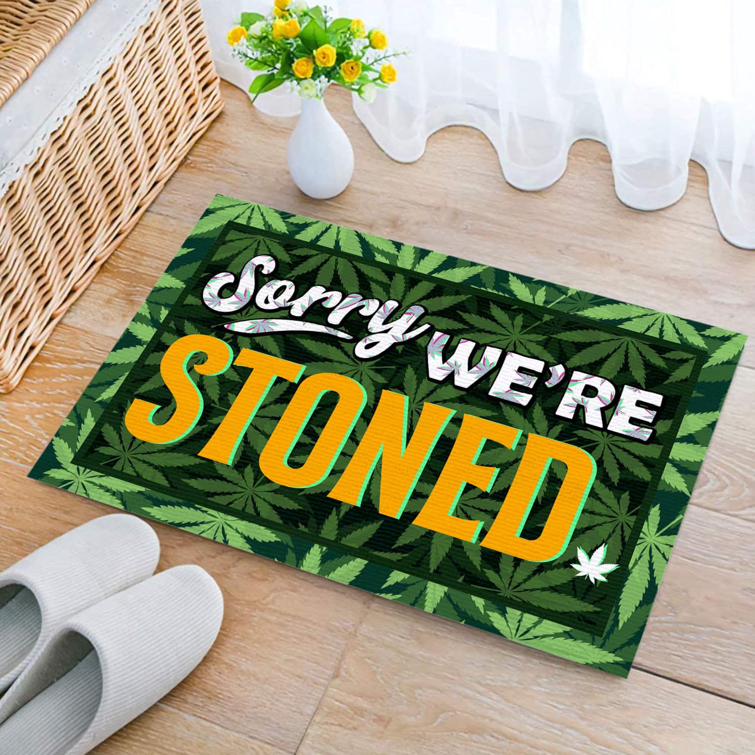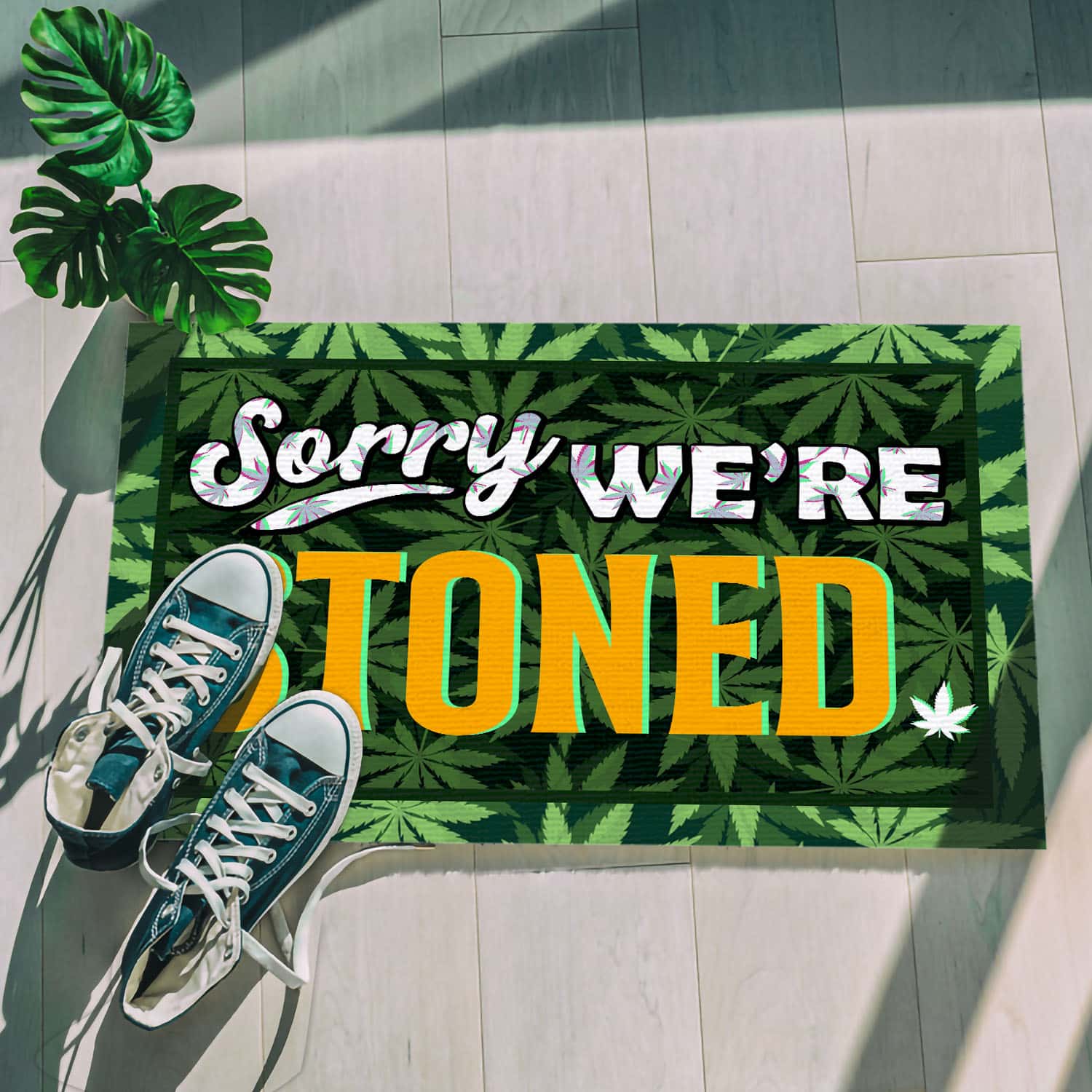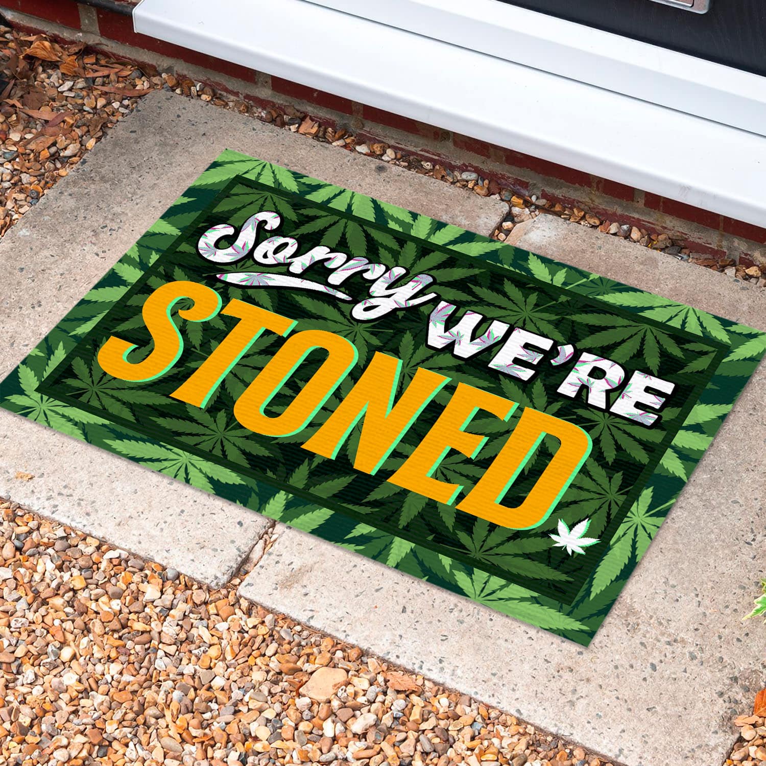 Let’s Shop Sorry We’re Stoned Indoor Doormat – Funny Marijuana Welcome Outdoor Doormat – Weed Entry Doormat!