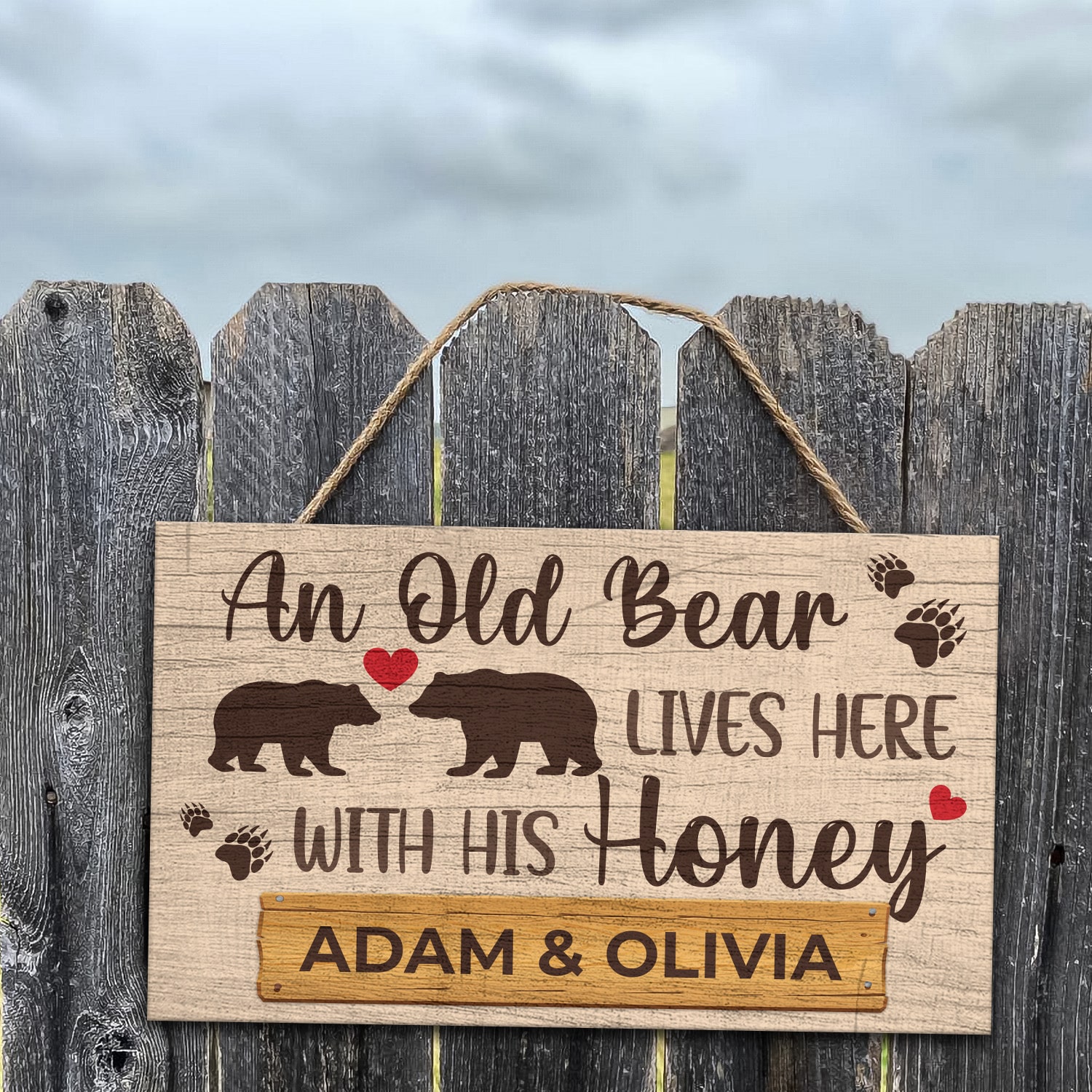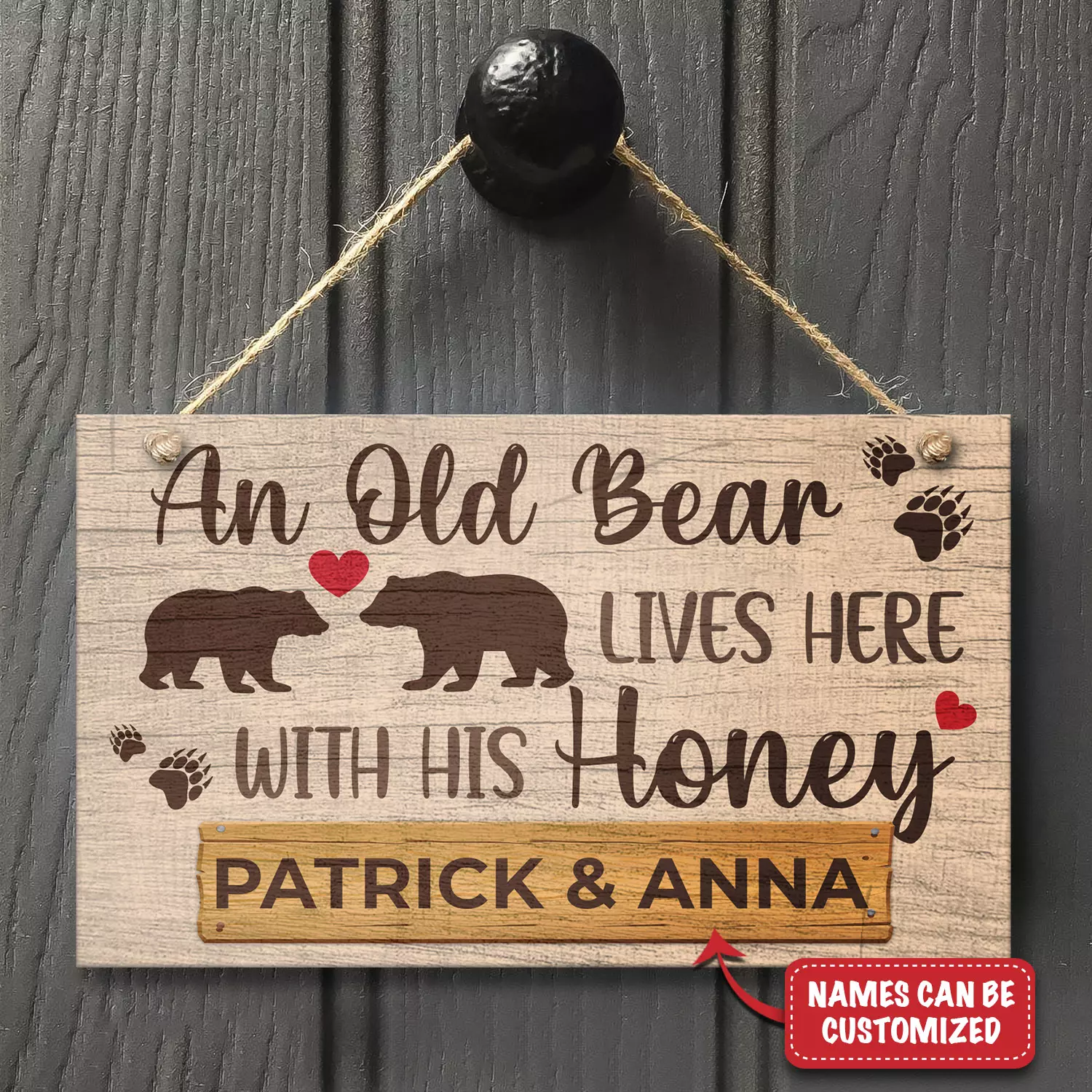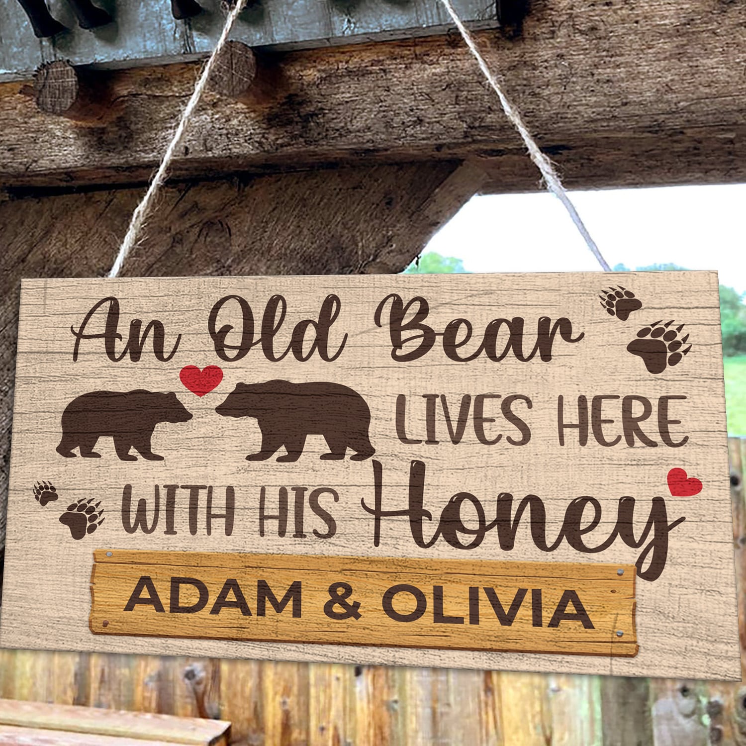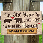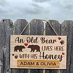 Let’s Shop Personalized Couple Name An Old Bear Lives Here With His Honey Decorative Rectangle Wooden Door Sign – Funny Welcome Couple Bear Sign!
