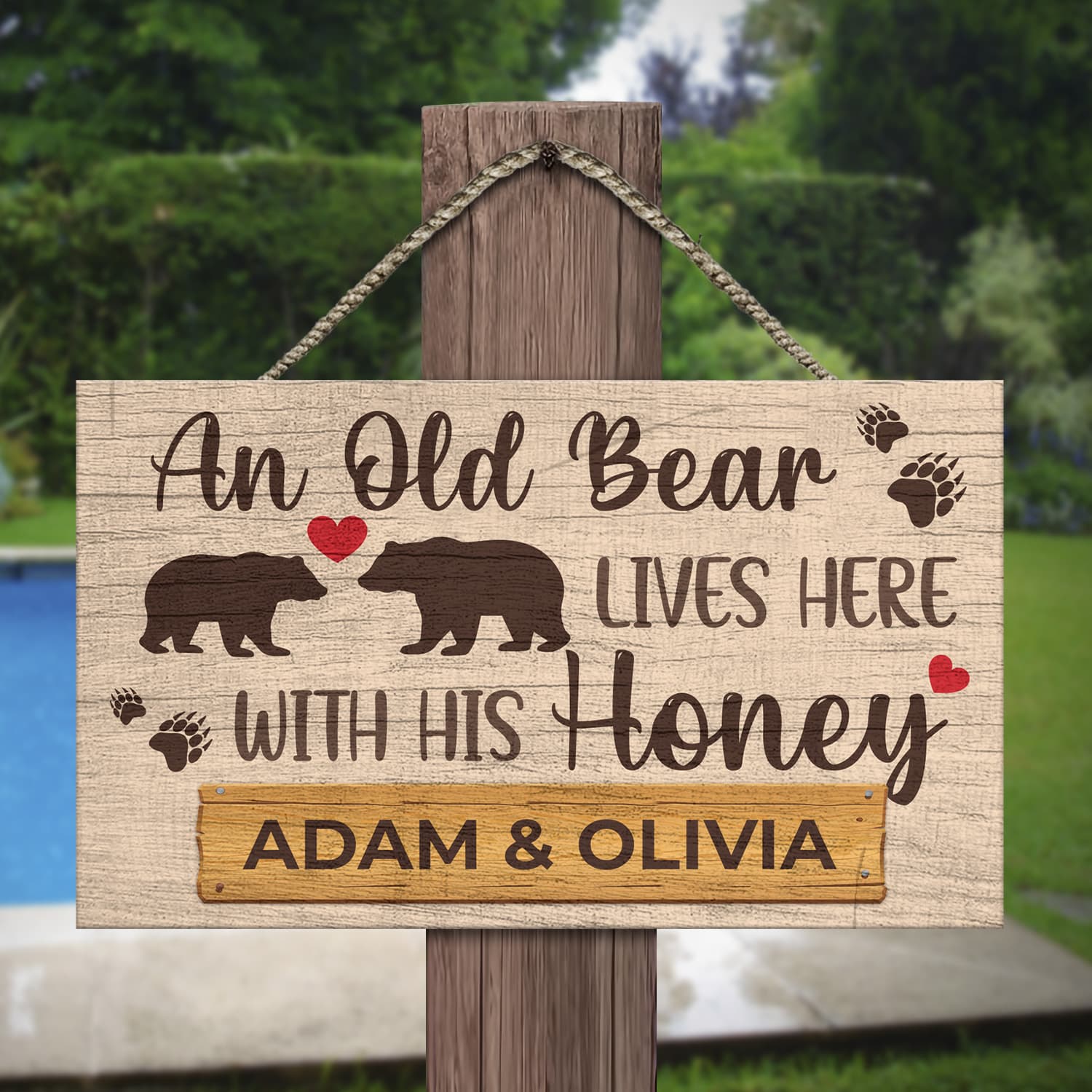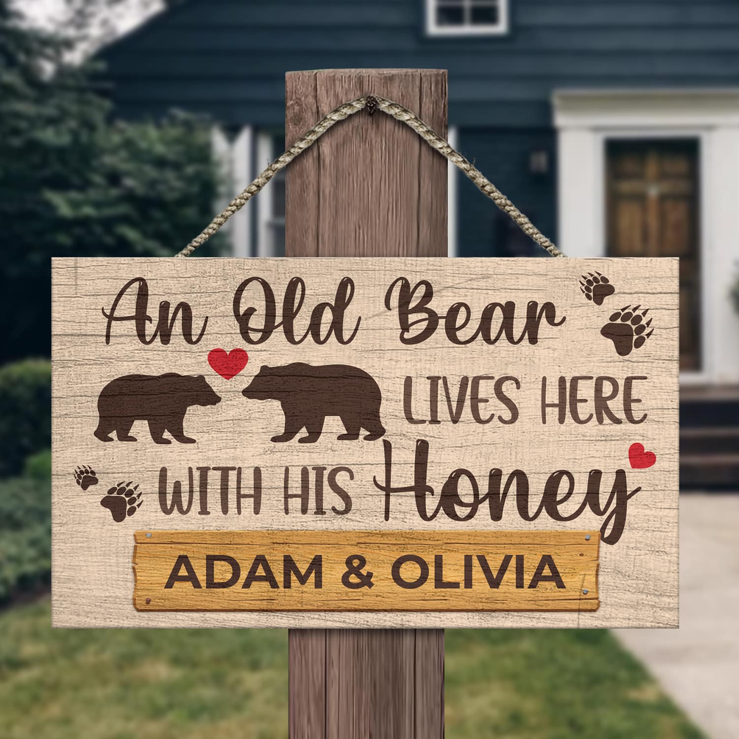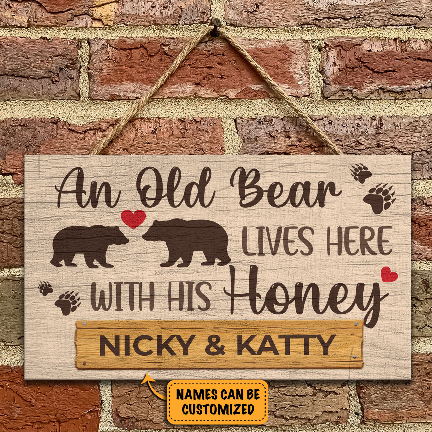 Let’s Shop Personalized Couple Name An Old Bear Lives Here With His Honey Decorative Rectangle Wooden Door Sign – Funny Welcome Couple Bear Sign!