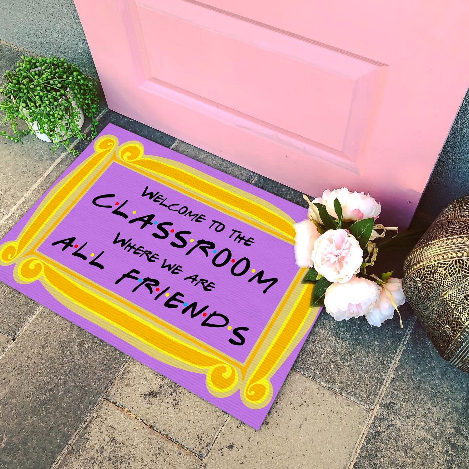 Let’s Shop Welcome to the Classroom Where We Are All Friends Outdoor Indoor Doormat!
