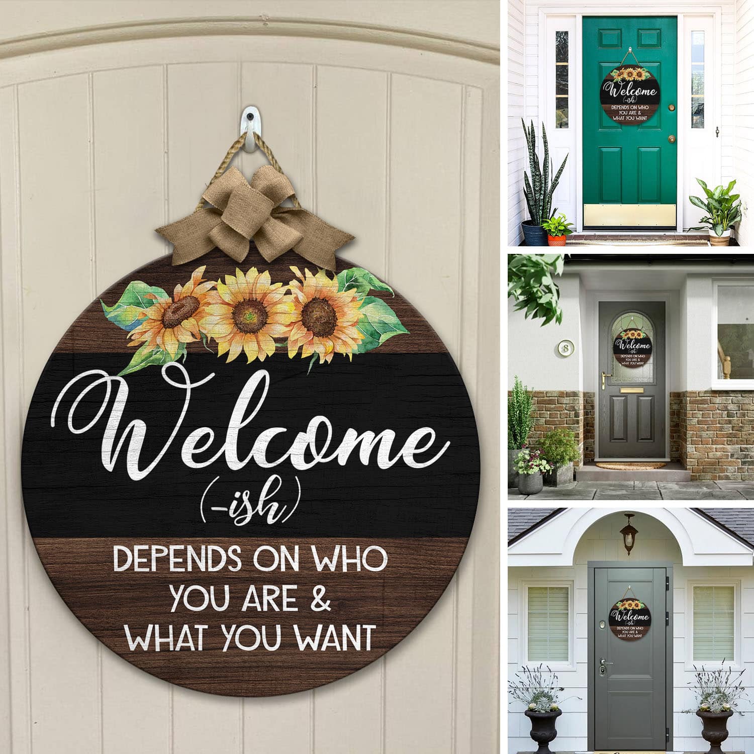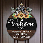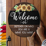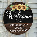 Let’s Shop Welcome Ish Depends On Who You Are And What You Want Funny Decorative Circle Wooden Door Sign – Front Porch Sign!