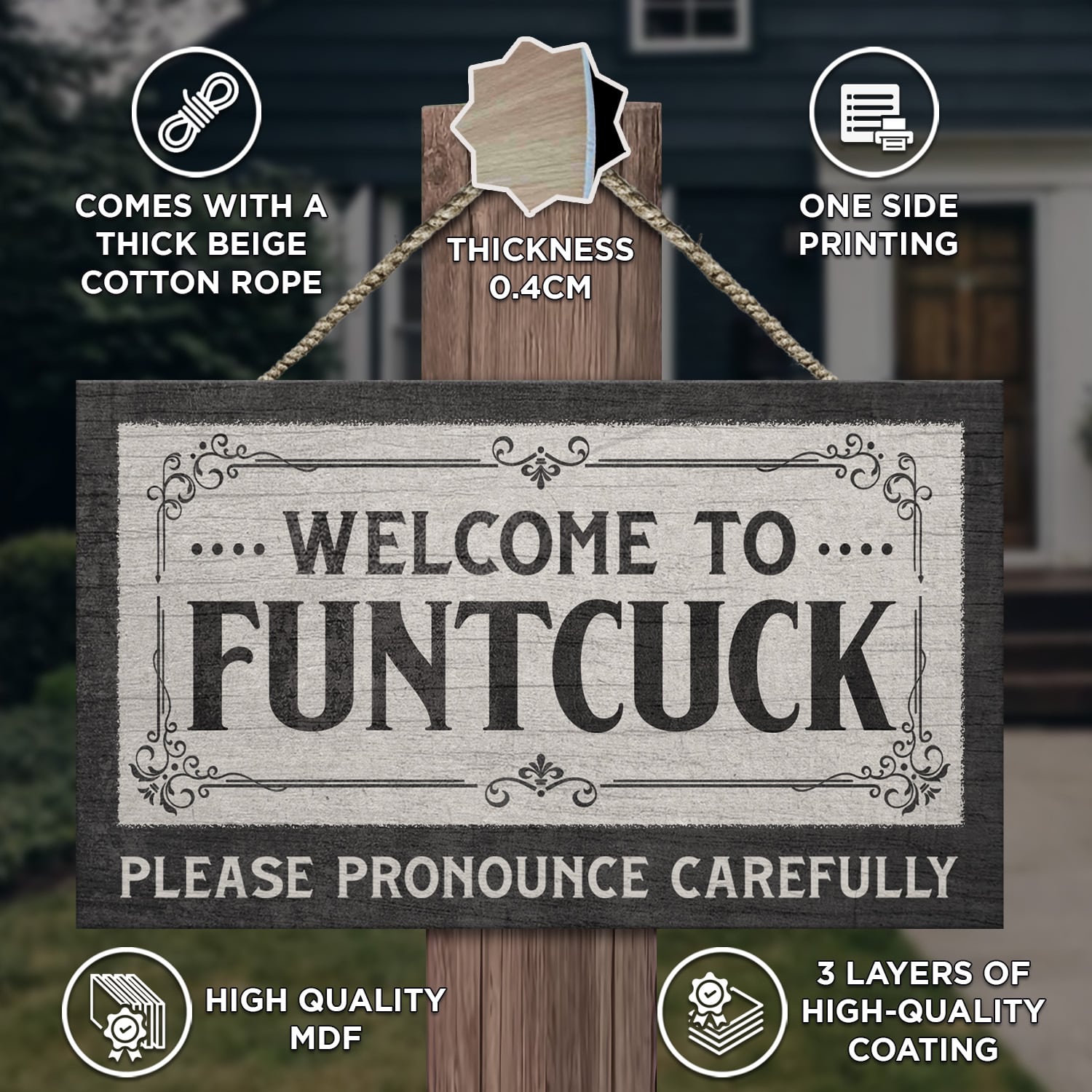 Are you spending too much time to find creative merchandise for you or suitable & special gifts for your mommy, your daddy, your son, your daughter, your children, your friends or someone you love? The struggle is over because we have various Funny Door Sign, Funtcuck Door Sign, Funtcuck Sign, Funny Sign, Funny Pronounce Sign, Welcome Funtcuck Door Sign, Hanger Sign, Funny Door Decor which will make perfect presents for your beloveds. In order to make your present stand out, we have created lots of unique and awesome customized photo gifts & personalized designs.