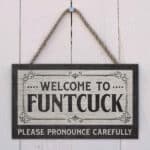 Let’s Shop Welcome FuntCuck Funny Sign – Funny Fuck Cunt Metal Sign!