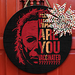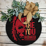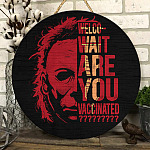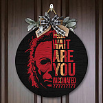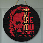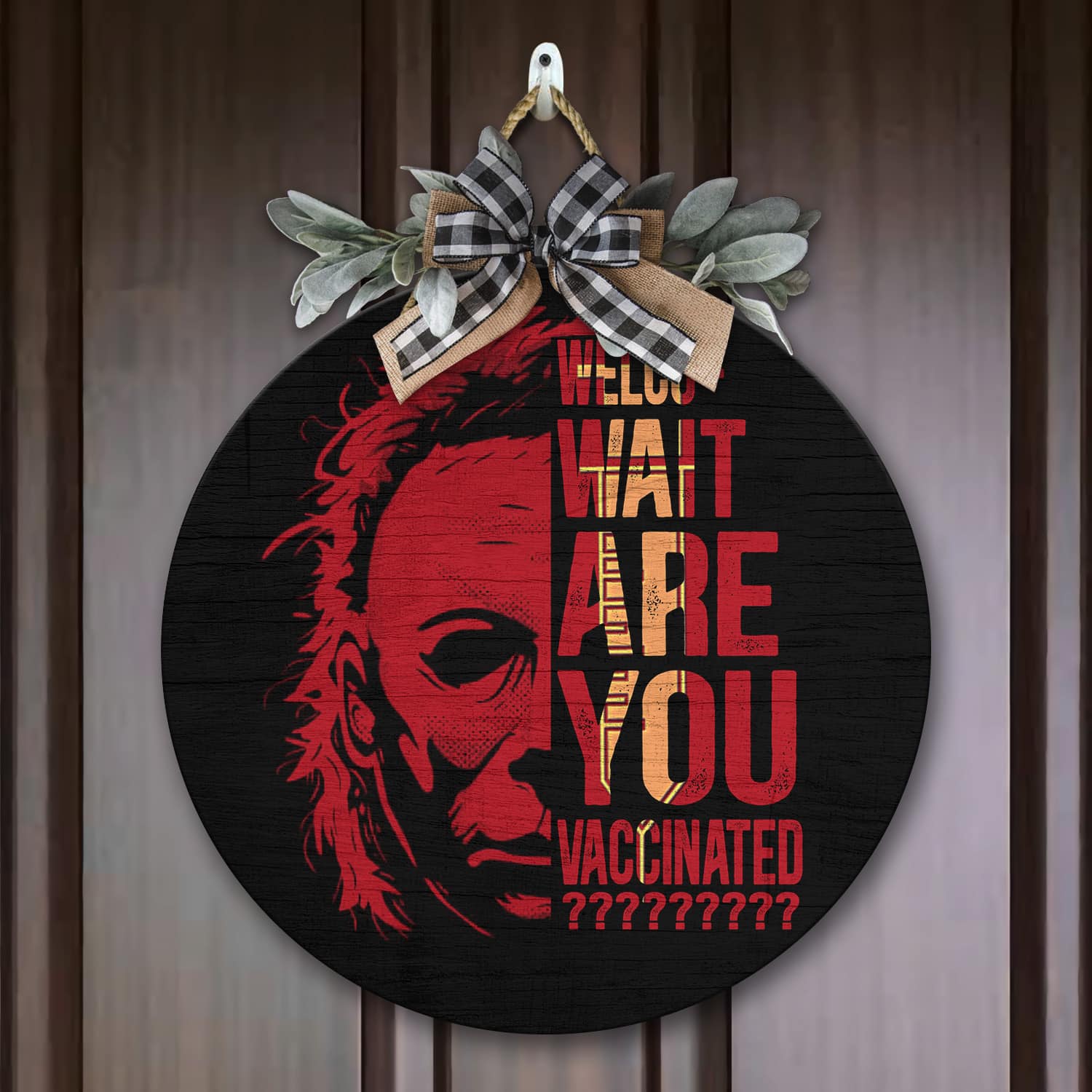 Let’s Shop Michael Welcome Myers Wait Are You Vaccinated Halloween Door Sign – Only Vaccinated Vaccine Warning Front Porch Sign Decor Farmhouse!