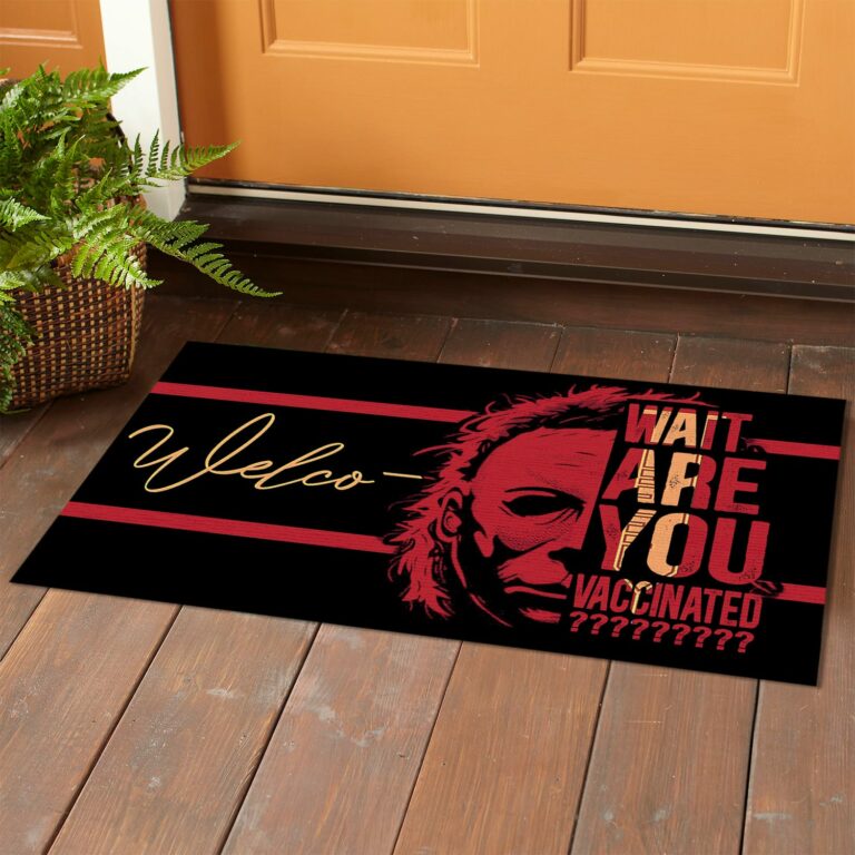 Let’s Shop Michael Welcome Myers Wait Are You Vaccinated Halloween Entrance Doormat – Only Vaccinated Door Knocker Vaccine Warning Doormat!