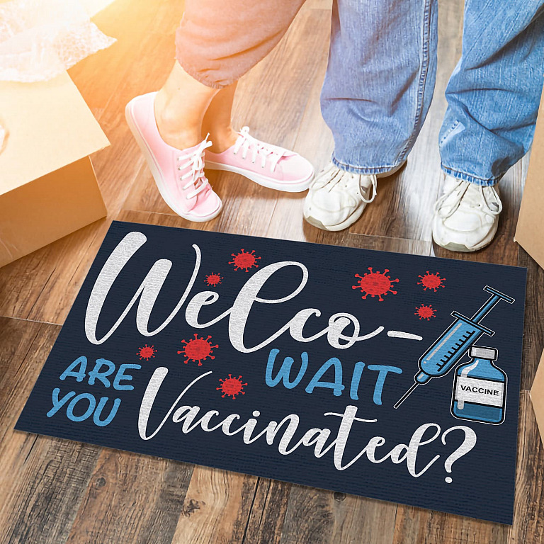 Let’s Shop Welcome Wait Are You Vaccinated Entrance Doormat – Only Vaccinated Can Enter Door Knocker Vaccine Warning Doormat!