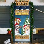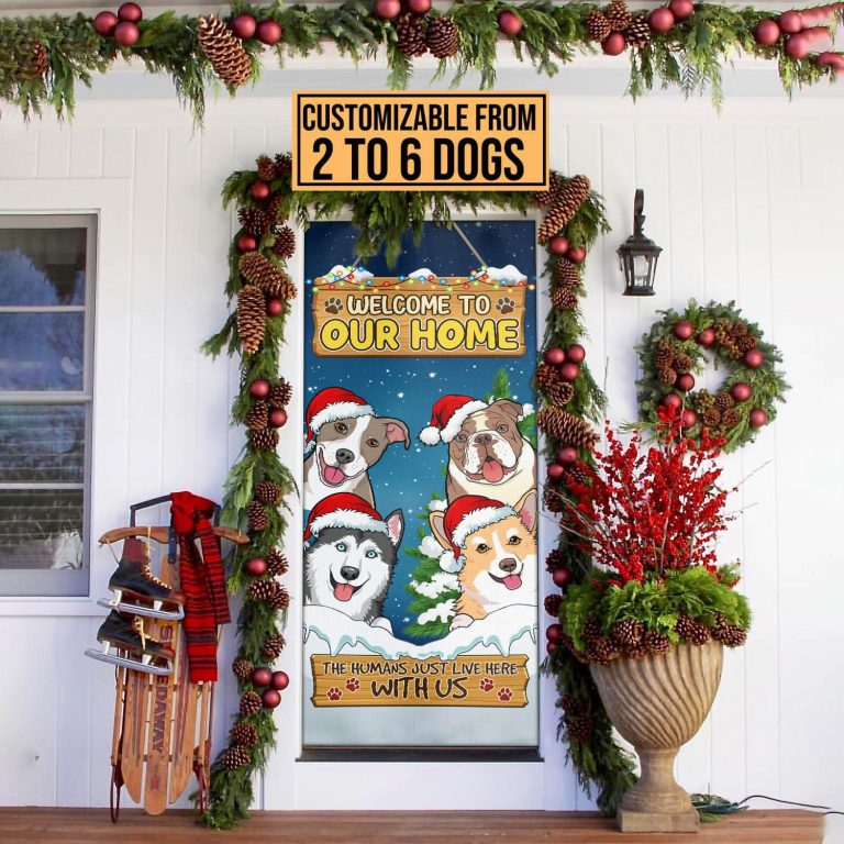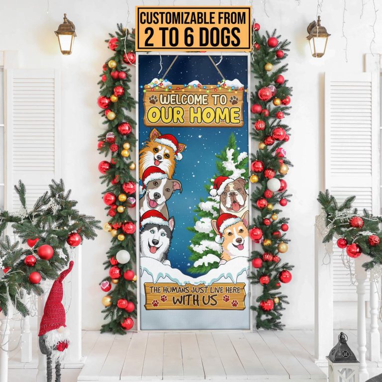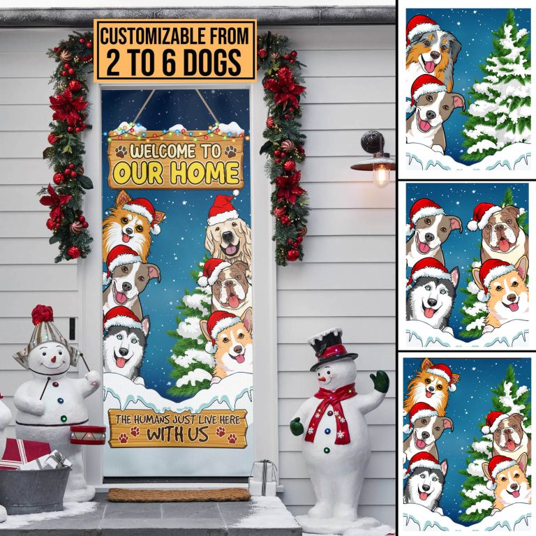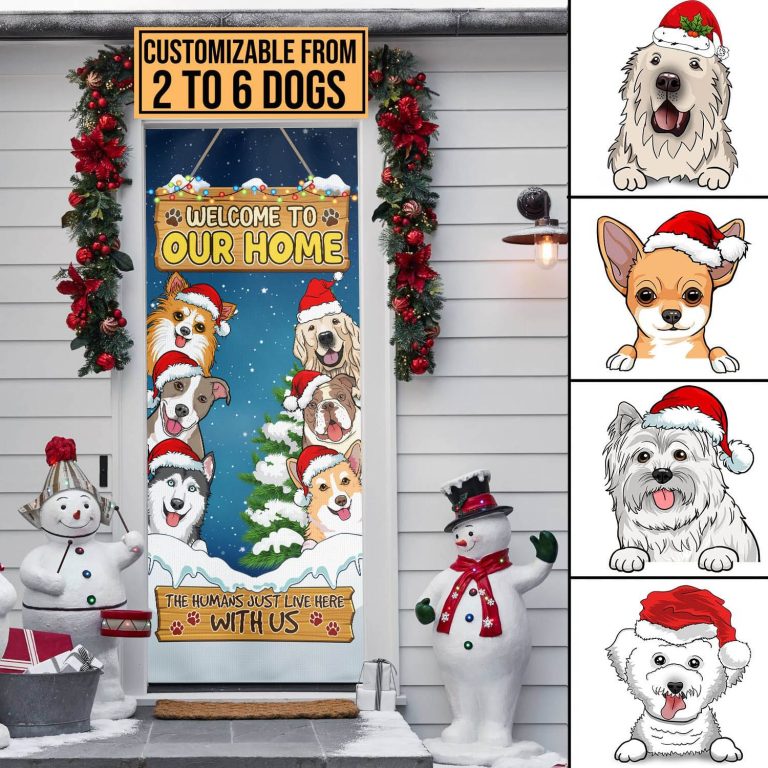Let’s Shop Welcome to Our Home Personalized Dog Breeds Door Cover – Custom Christmas Peeking Dogs Door Banner Decoration!