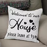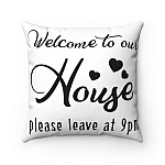 Welcome To Our Home Please Leave By 9 Pm Throw Pillow - Decorative Pillow - Indoor Outdoor Cushion - Sofa Home Decor