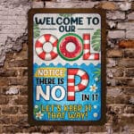 Let’s Shop Welcome To Our Ool Notice There Is No P in It Funny Pool Sign – Metal Sign!
