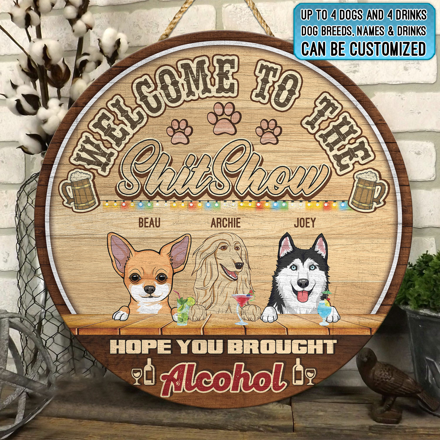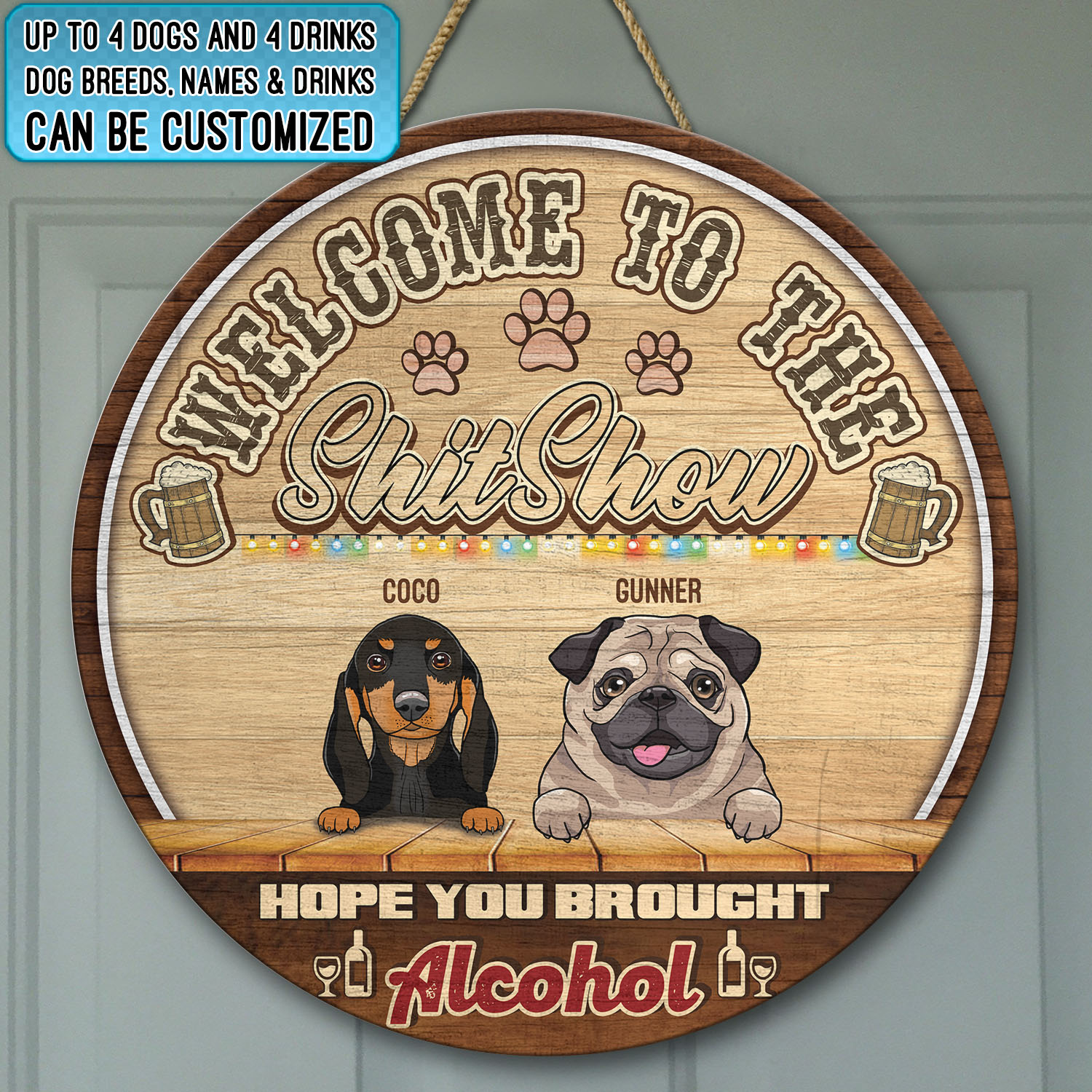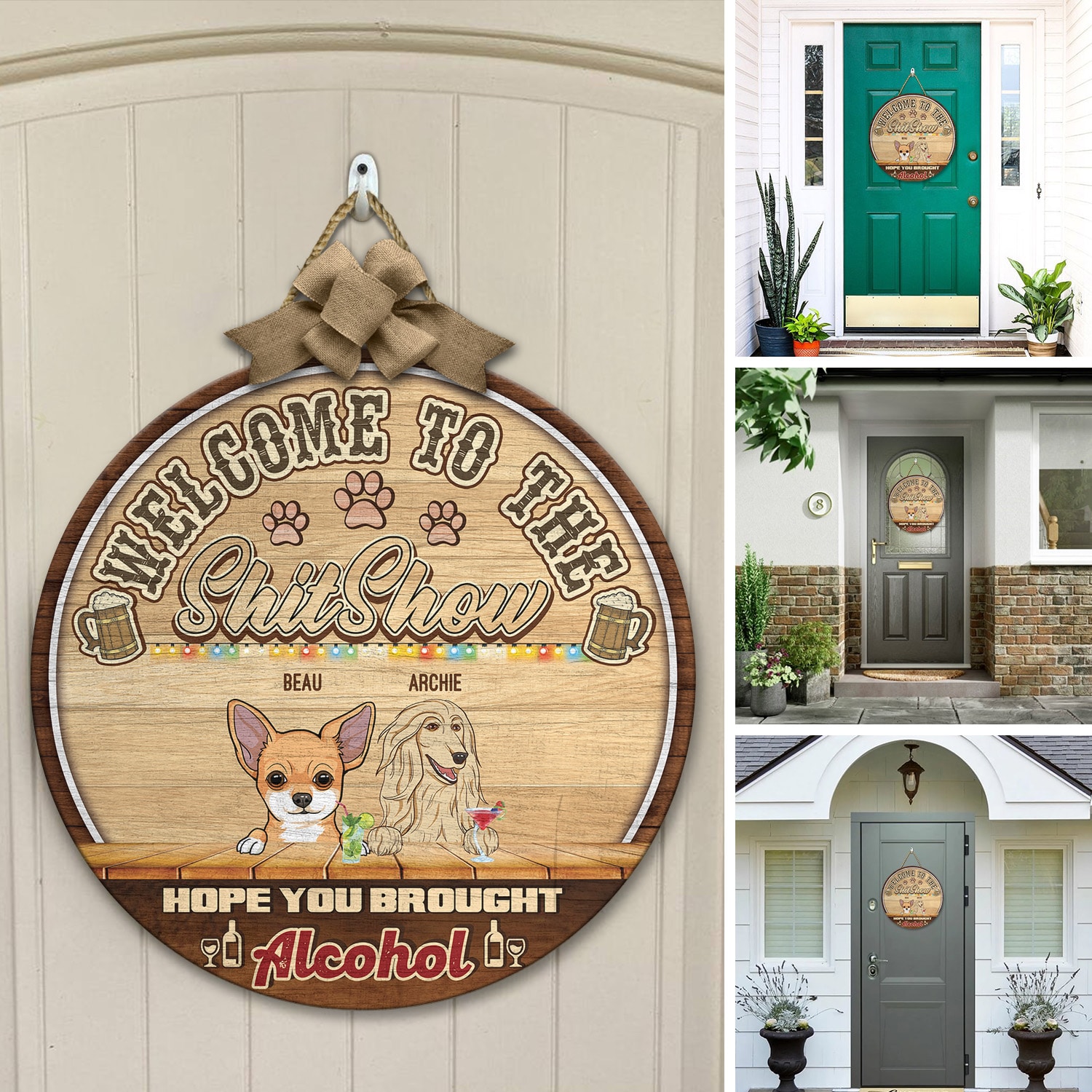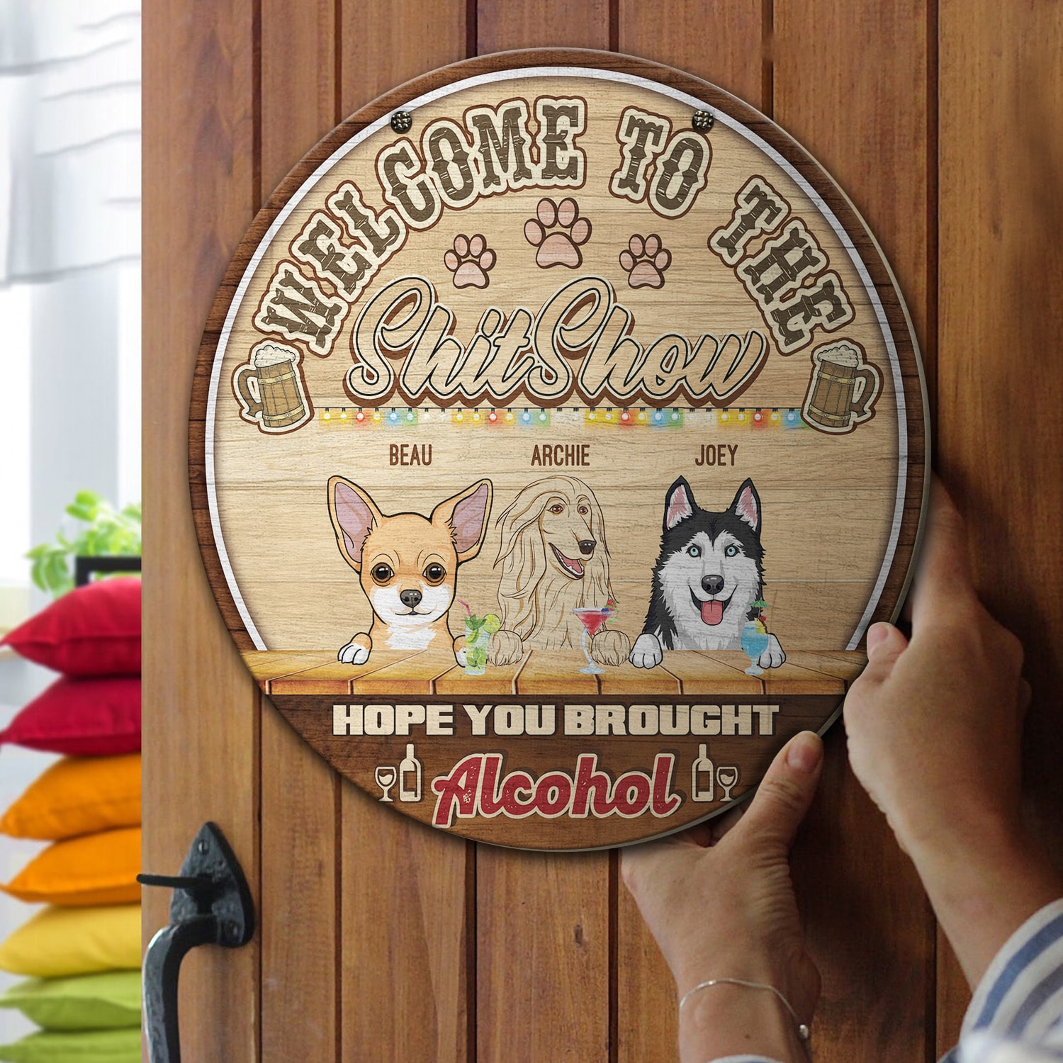 Let’s Shop Welcome to The Shitshow Personalized Dog Breed Decorative Circle Wooden Door Sign – Funny Drinking Dogs Front Porch Signs!