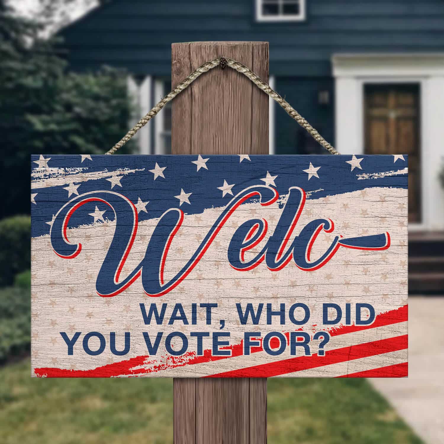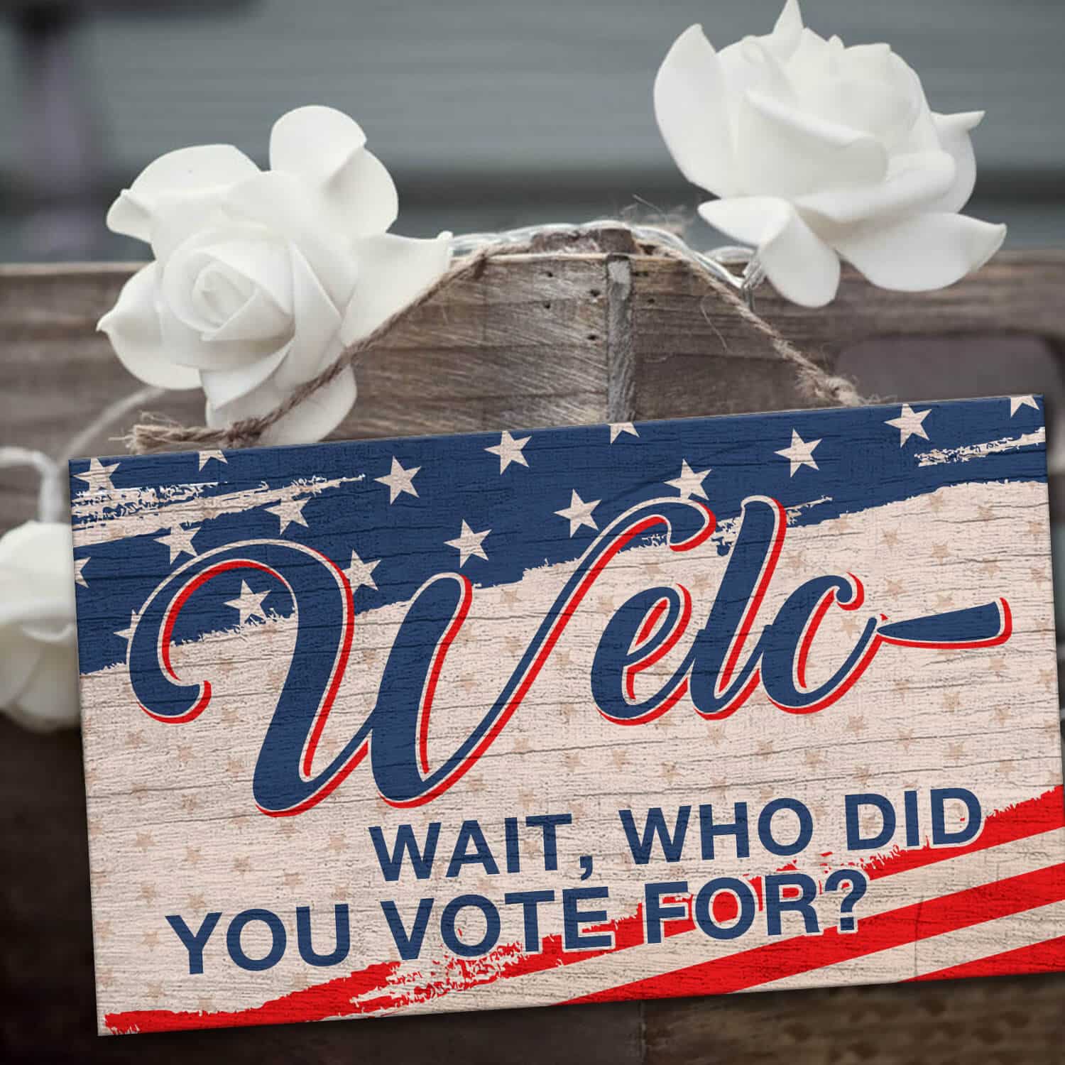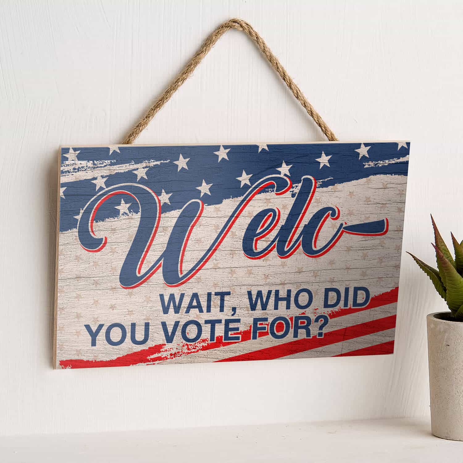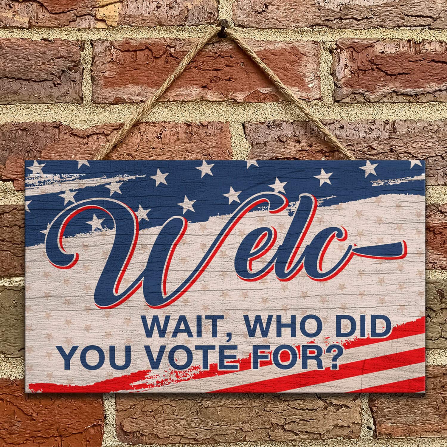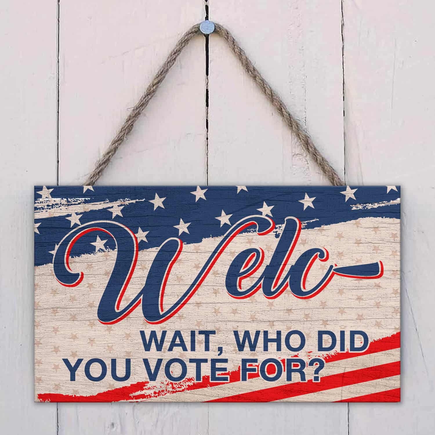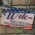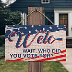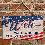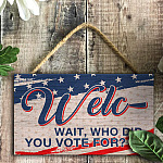 Let’s Shop Welc- Wait Who Did You Vote For American Decorative Rectangle Wooden Door Sign – Funny Welcome Hanging Door Sign!
