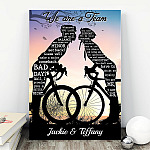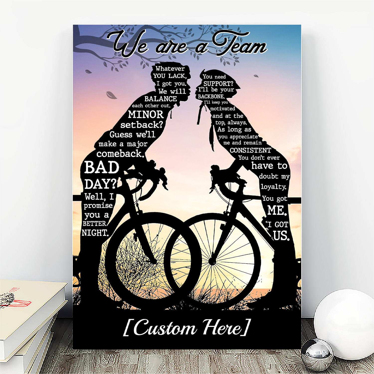 Let’s Shop Personalized Kissing Biking Couple We’re A Team Gallery Wrapped Framed Canvas Prints – Unframed Poster!