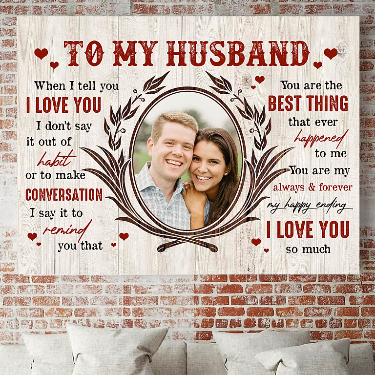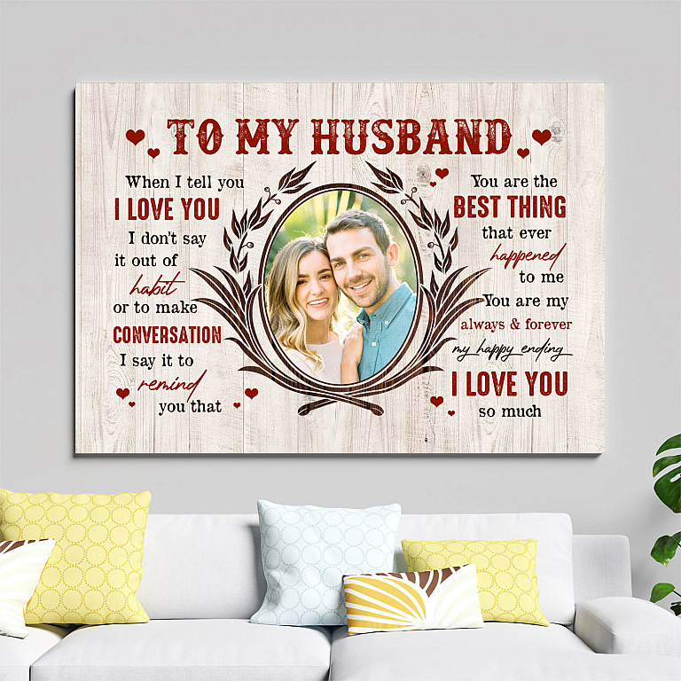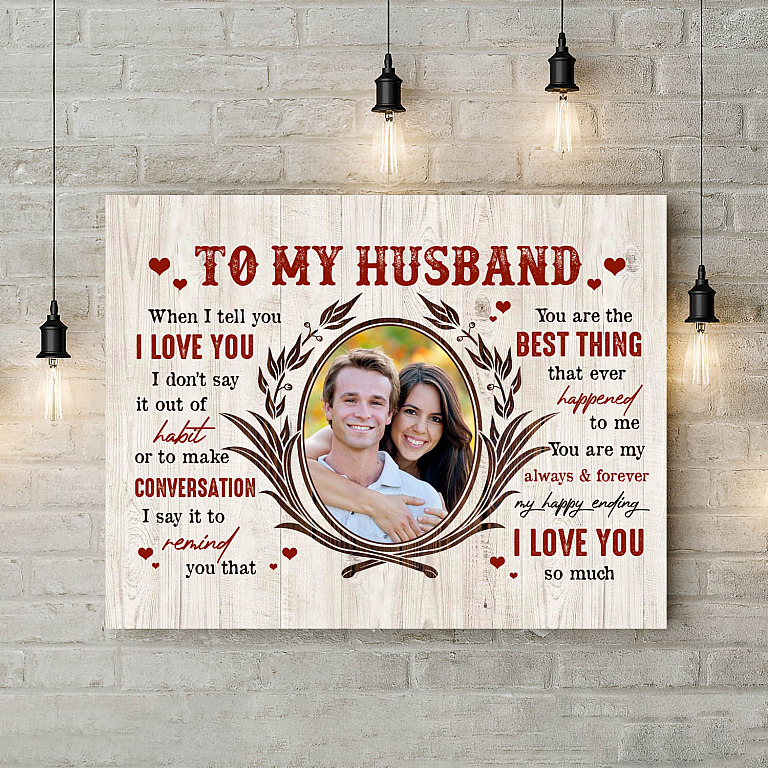 Let’s Shop Personalized Photo To My Husband When I Tell You I Love You I Don’t Say It Out Of Habit Framed Canvas – Unframed Poster!