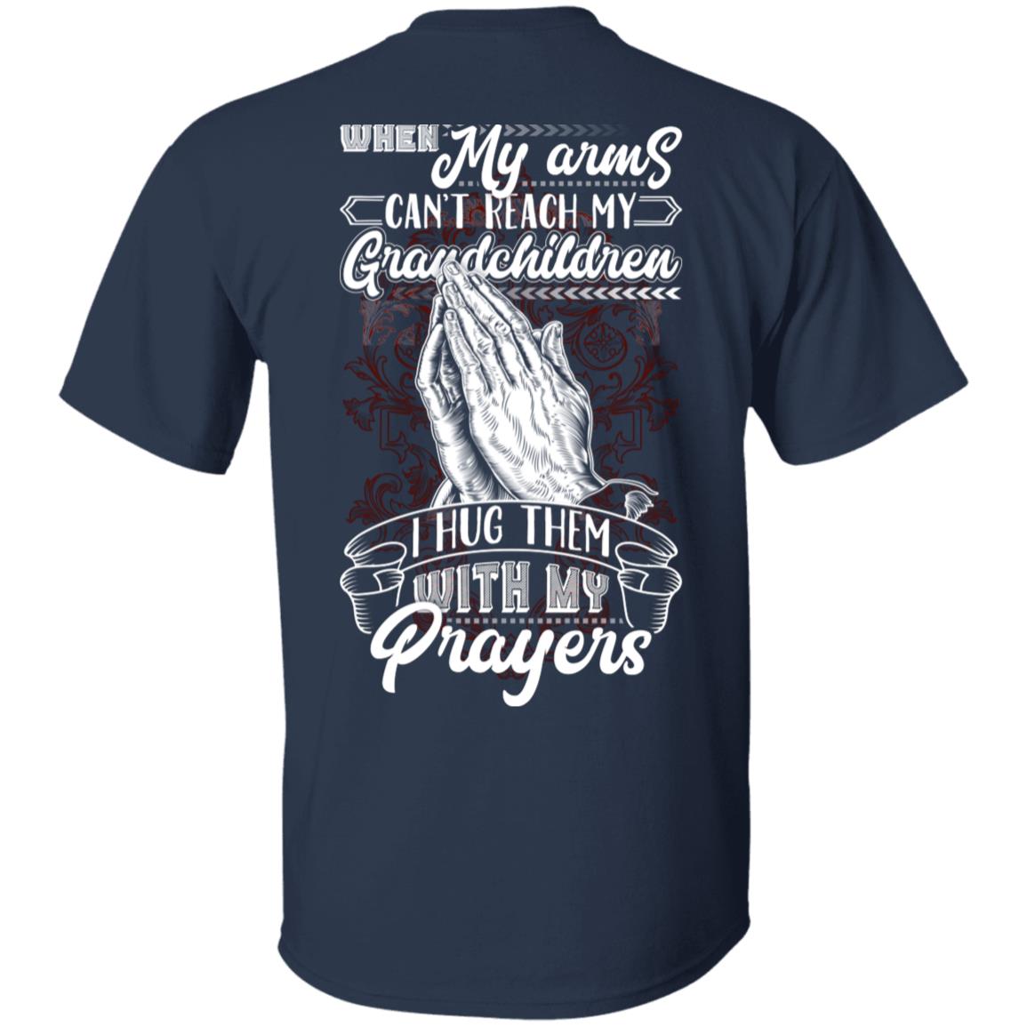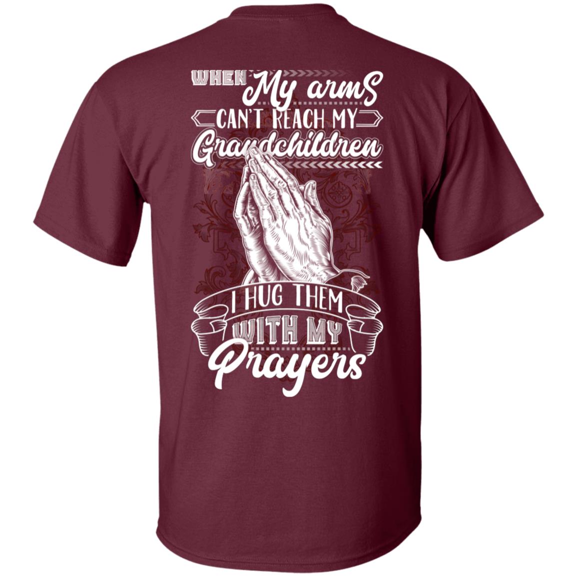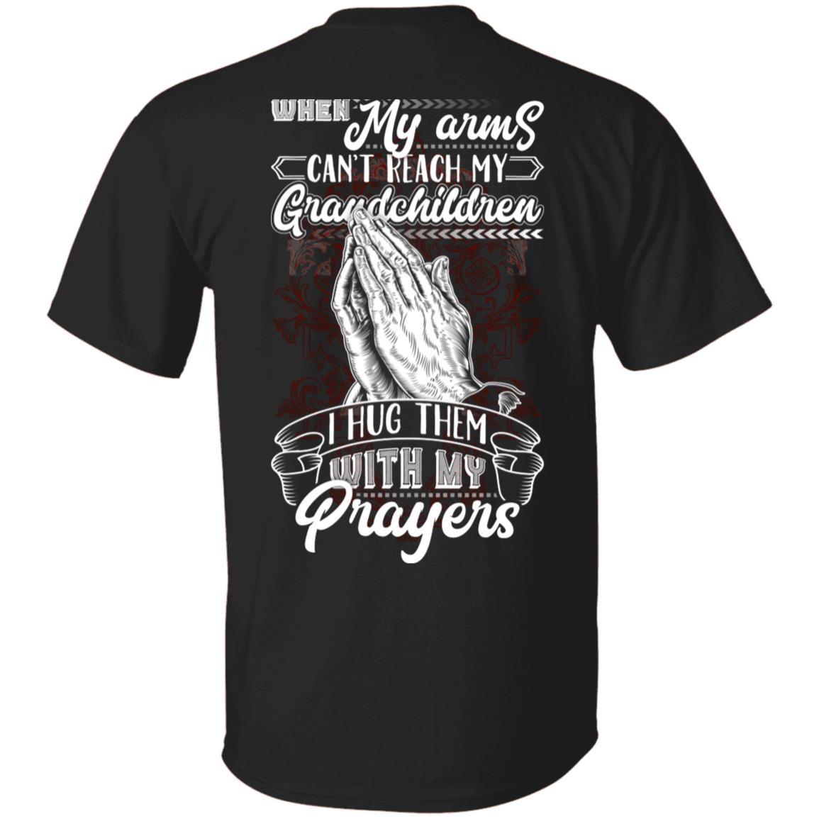 When My Arms Can't Reach My Grandchildren I Hug Them with My Prayers Print On Back Only - Plain Front T-Shirt