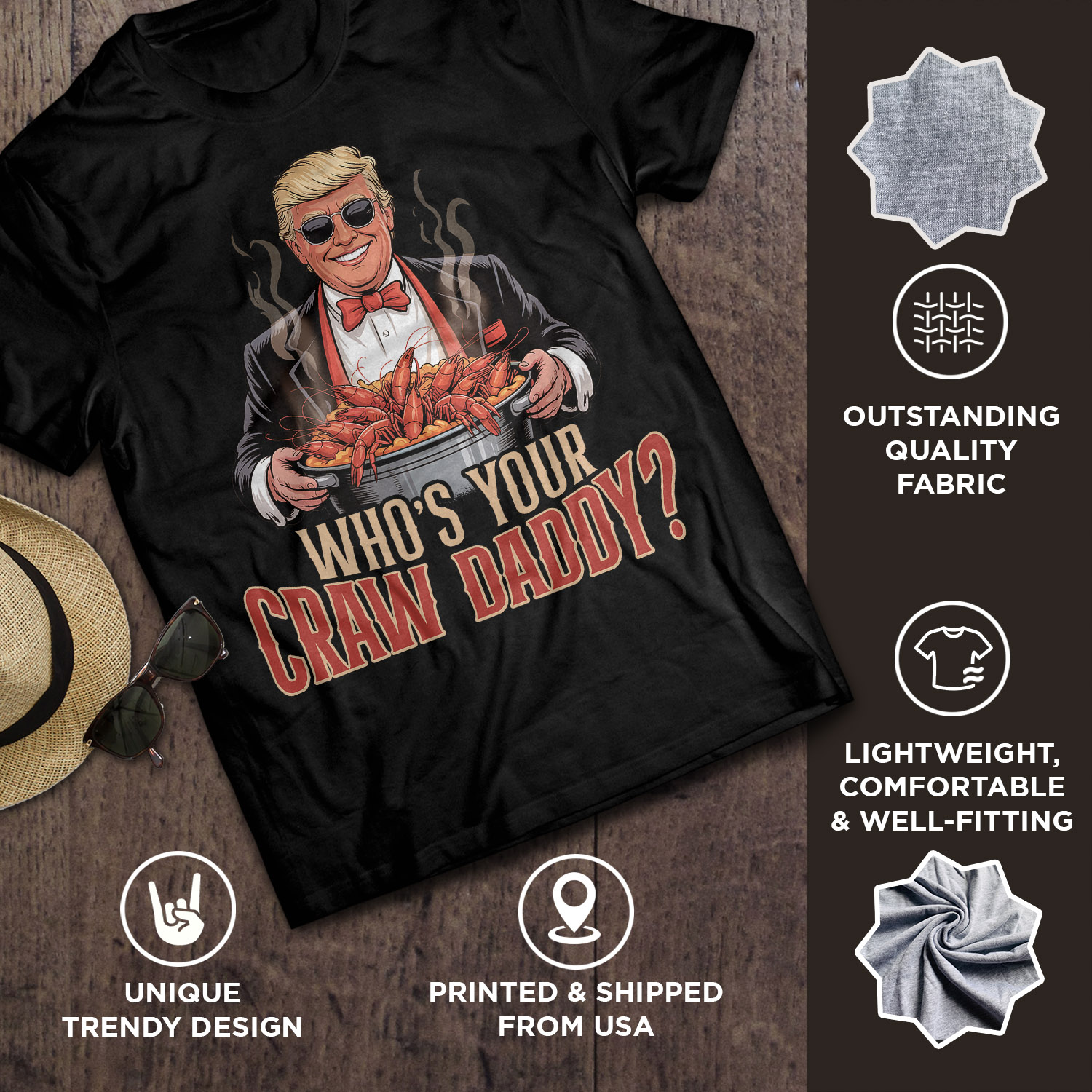 Are you spending too much time to find creative merchandise for you or suitable & special gifts for your mommy, your daddy, your son, your daughter, your children, your friends or someone you love? The struggle is over because we have various Who’s Your Craw Daddy Shirt, Trump Crawfish Shirt, Trump Crawfish, Whos Your Crawdaddy Trump Shirt, Crawfish Shirt Donald Trump, Crawfish Trump T-Shirt, Whos Your Crawdaddy Trump, Donald Trump Crawfish which will make perfect presents for your beloveds. In order to make your present stand out, we have created lots of unique and awesome customized photo gifts & personalized designs.