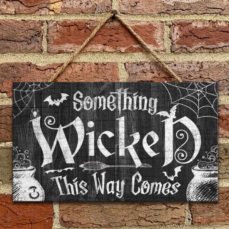 Let’s Shop Something Wicked This Way Comes Creepy Halloween Rectangle Wooden Door Sign – Indoor Outdoor Front Porch Sign!