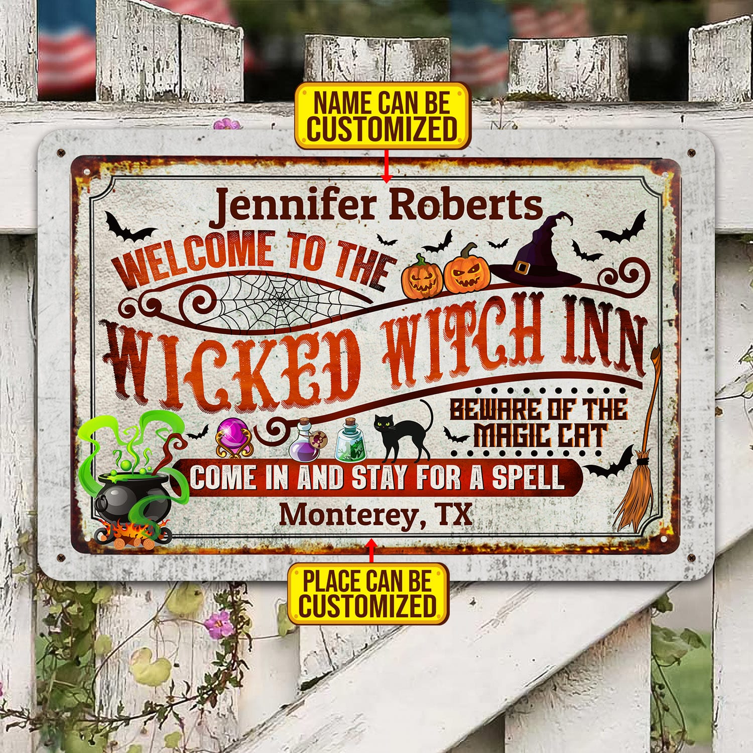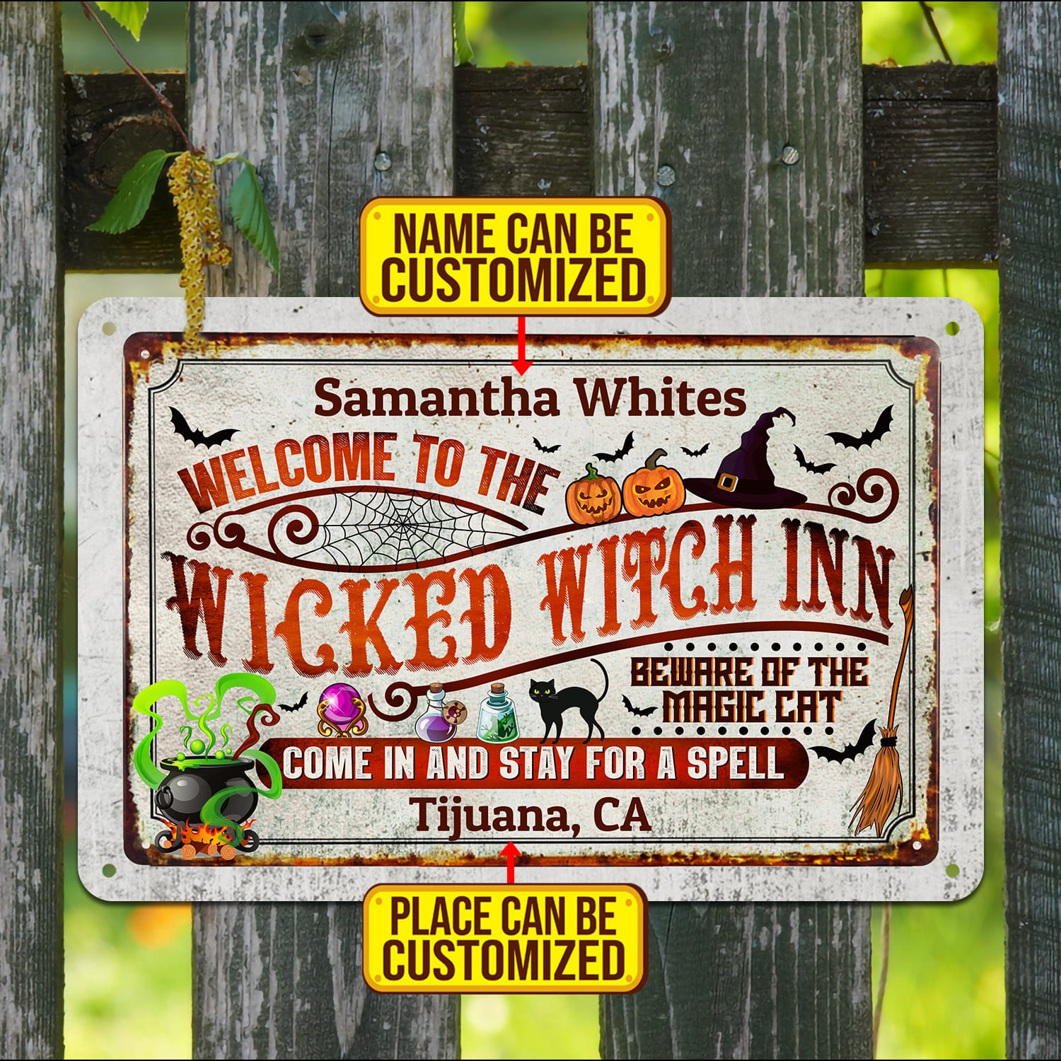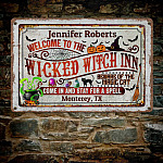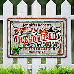 Let’s Shop Welcome to The Wicked Witch Inn Come in And Stay for A Spell Personalized Halloween Metal Sign – Halloween Indoor Outdoor Decor!
