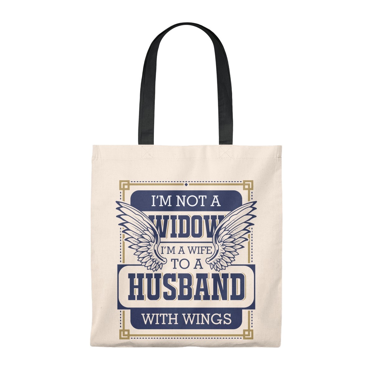 Shop I’m Not a Widow I’m a Wife to a Husband with Wings Vintage Canvas Tote Bag – Shoulder Bag.