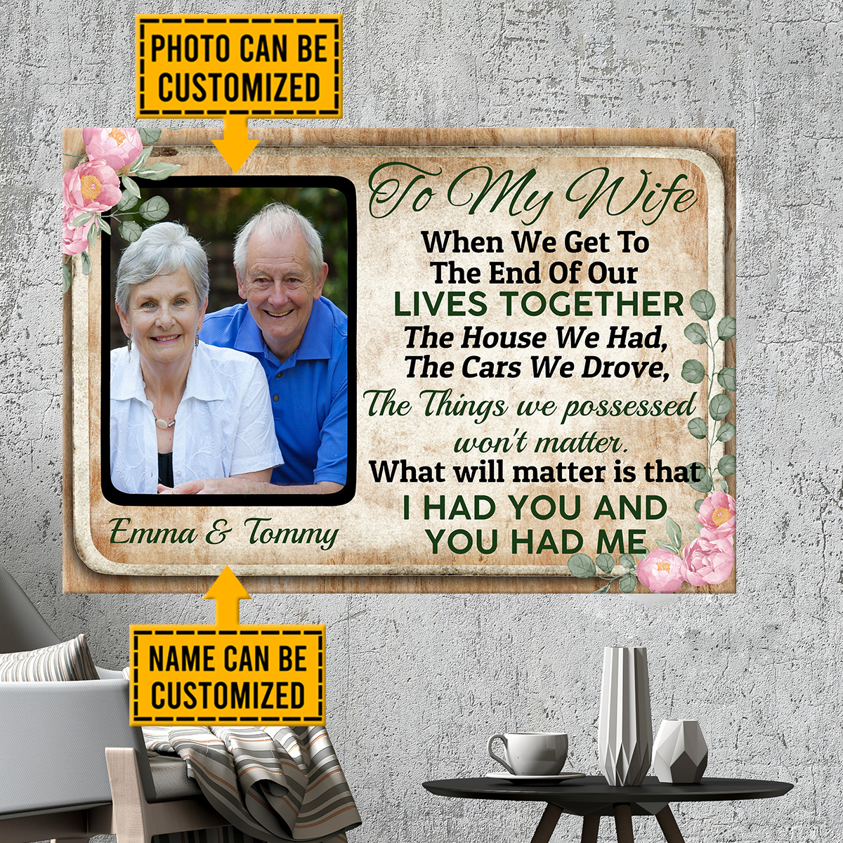 Are you spending too much time to find creative merchandise for you or suitable & special gifts for your mommy, your daddy, your son, your daughter, your children, your friends or someone you love? The struggle is over because we have various Gift Custom Canvas Husband & Wife Photos Canvas, Personalized Husband and Wife Canvas, Personalized Canvas Pictures Husband and Wife, to My Wife Personalized Poster, Personalized Poster for Wife, Husband and Wife Personalized Wall Decor for Bedroom which will make perfect presents for your beloveds. In order to make your present stand out, we have created lots of unique and awesome customized photo gifts & personalized designs.