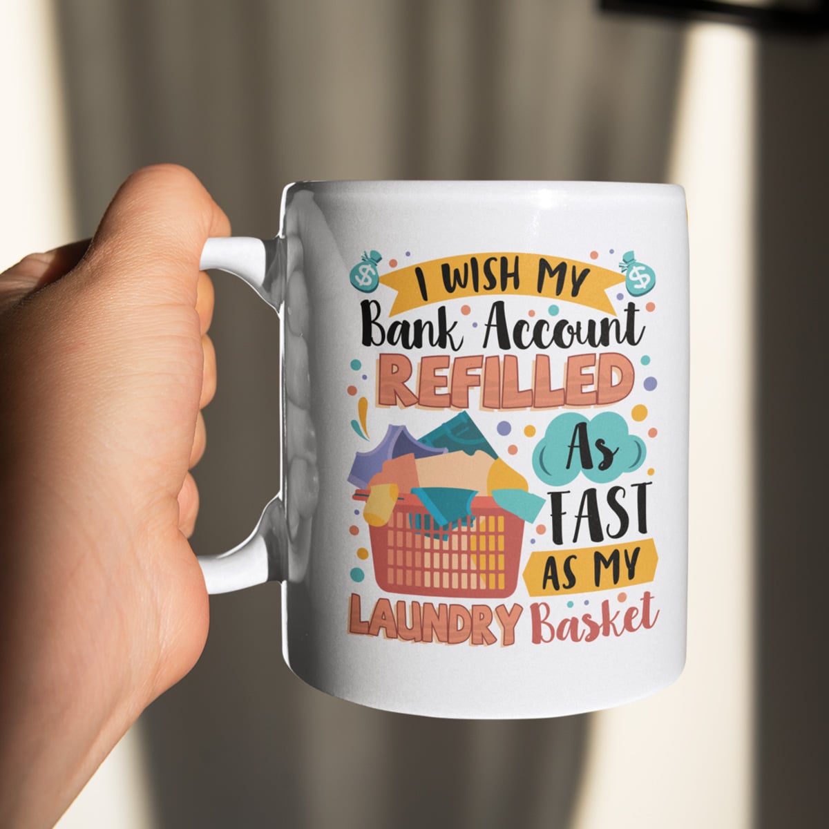 Let’s Shop I Wish My Bank Account Refilled As Fast As My Laundry Basket Funny Coffee Mug for Wife – Water Bottle!