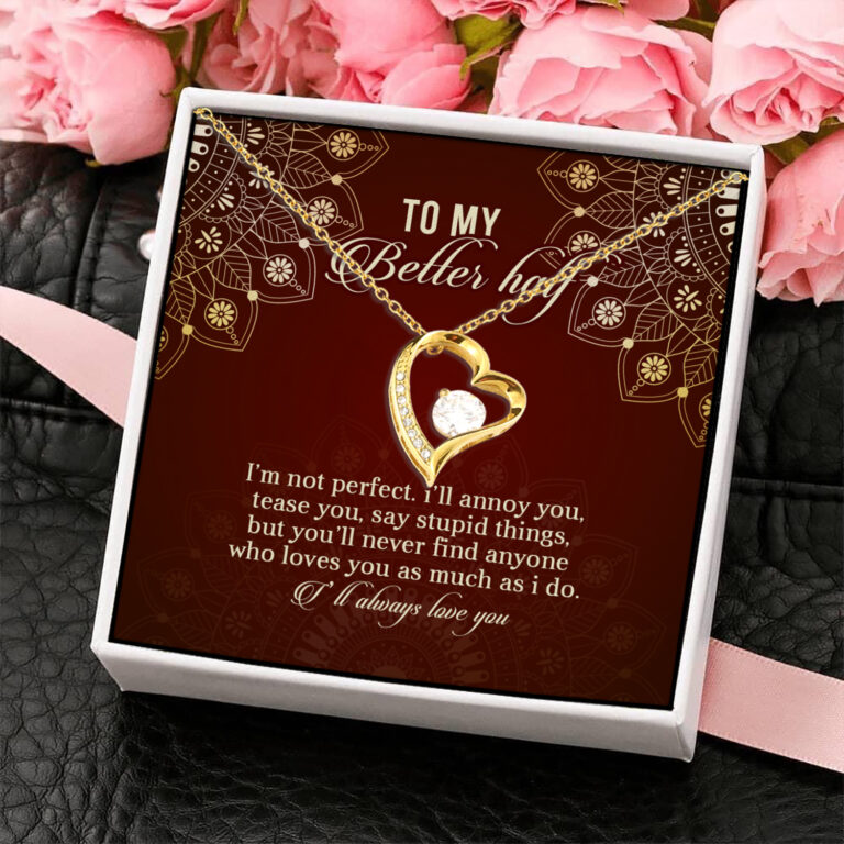 At CubeBik, besides engraved jewelry, we also offer tees, hoodies, sweaters, raglans, tanks, wall arts, canvases, posters, mugs, blankets, personalized necklaces, printed face masks, throw pillows, tote bags, hats, accessories and more on our website, so do not miss our other To My Better Half I’m Not Perfect I’ll Annoy You Tease You Say Stupid Things, To My Future Wife the Day I Met You My Life Changed the Way You Make Me Feel, Wife Anniversary Necklace, My Dear Wife Necklace, Wife Necklace from Husband, to My Future Wife Necklace, Wife Anniversary Jewelry, Future Wife Necklace, Future Wife Gifts, Future Wife Jewelry, Bride to Be Gifts, Wedding Day Gifts for Bride, Christmas Gift for Wife from Husband, Christmas Wife Gifts, Wife Necklace Sterling Silver, Wife Necklace from Husband Gold related merchandise. Moreover, all the products are made-to-order and one of a kind custom designs you can’t get elsewhere in normal stores. Let’s discover CubeBik.com now and find your favorite personalized items. We can’t wait to surprise and build beautiful memories with you and your loved ones.