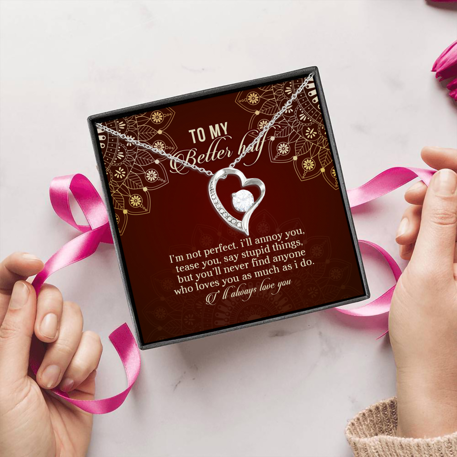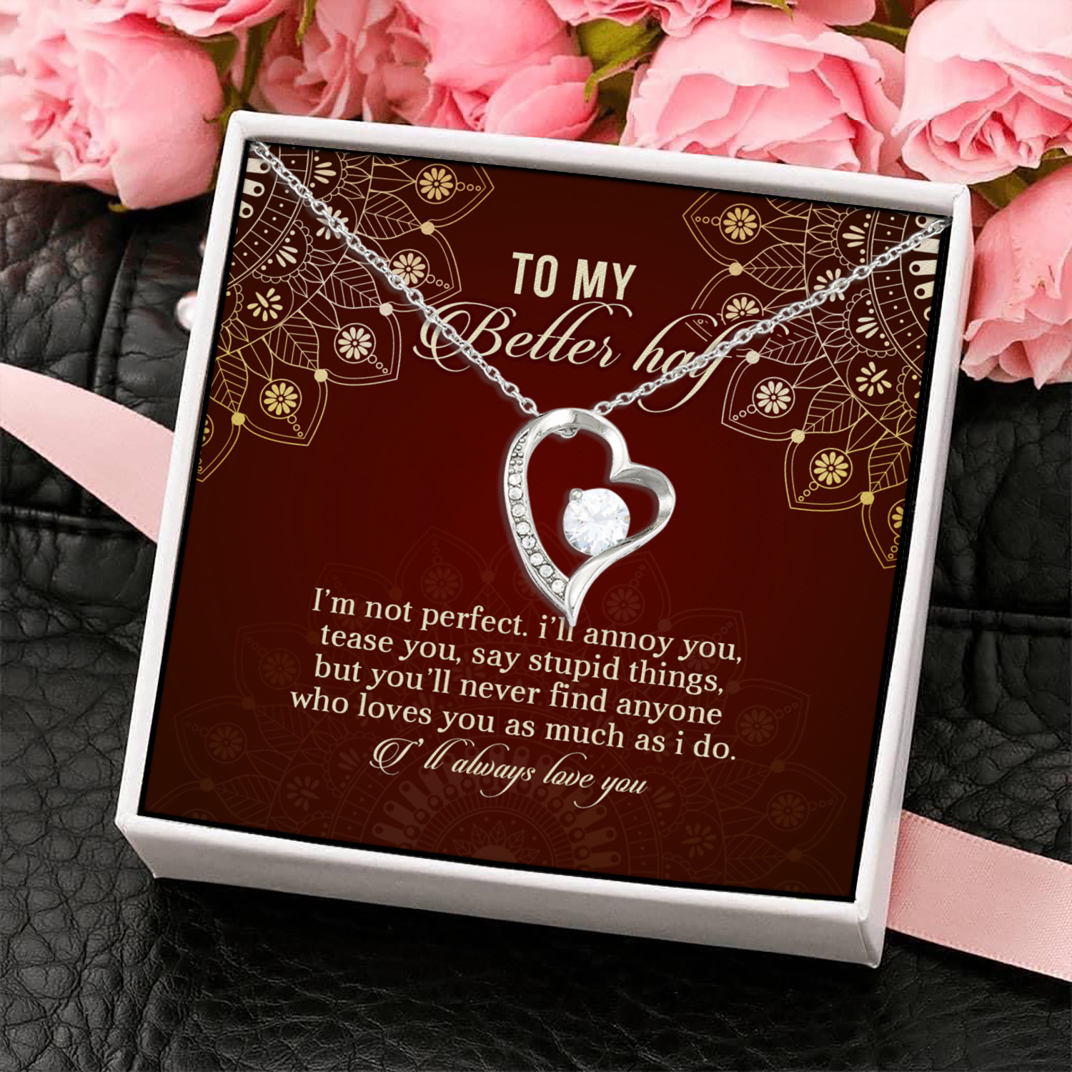 Let’s Shop To My Better Half I’m Not Perfect I’ll Annoy You Tease You Say Stupid Things Forever Love Pendant Necklace!