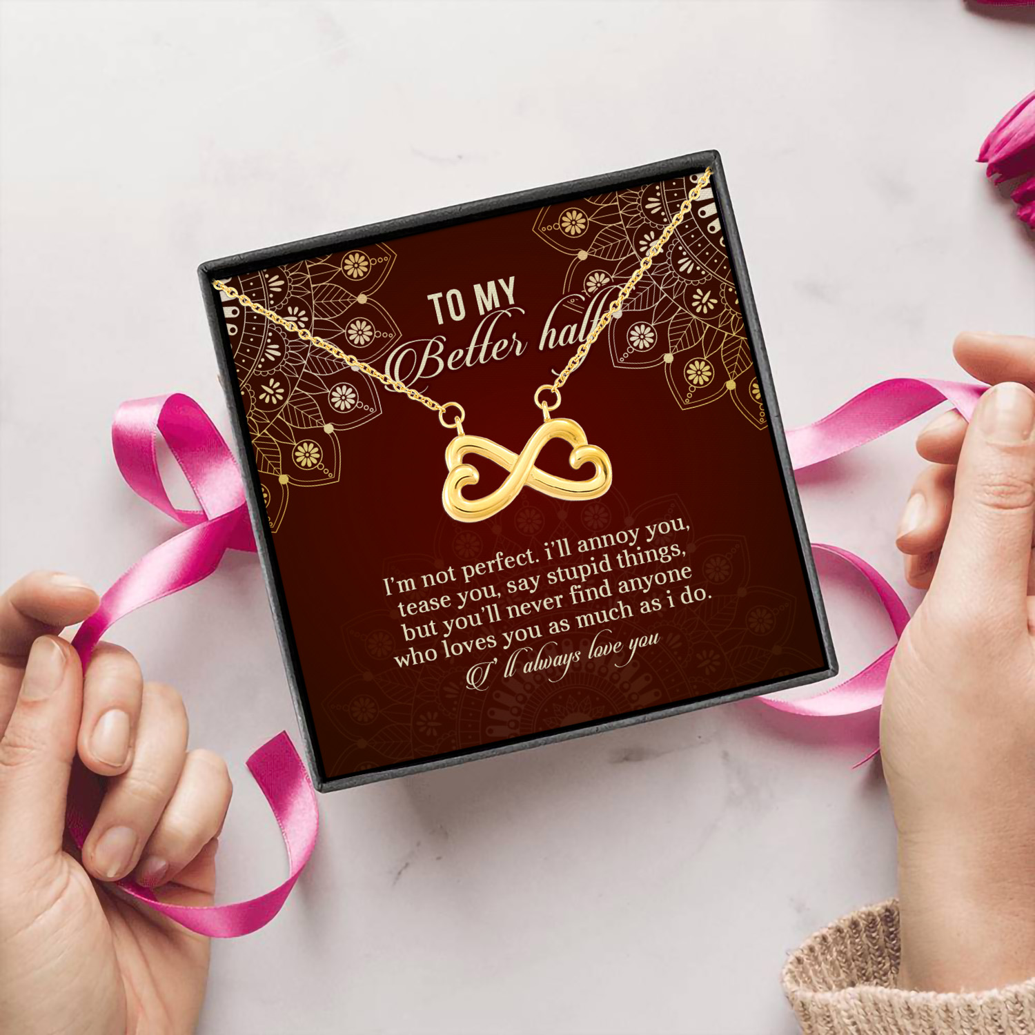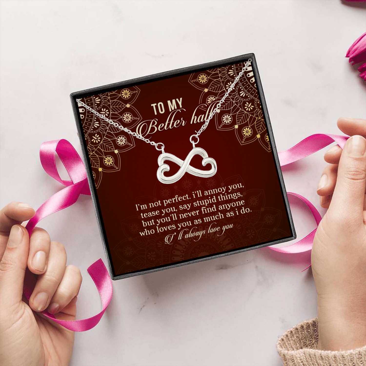 Let’s Shop To My Better Half I’m Not Perfect I’ll Annoy You Tease You Say Stupid Things Infinity Heart Pendant Necklace!