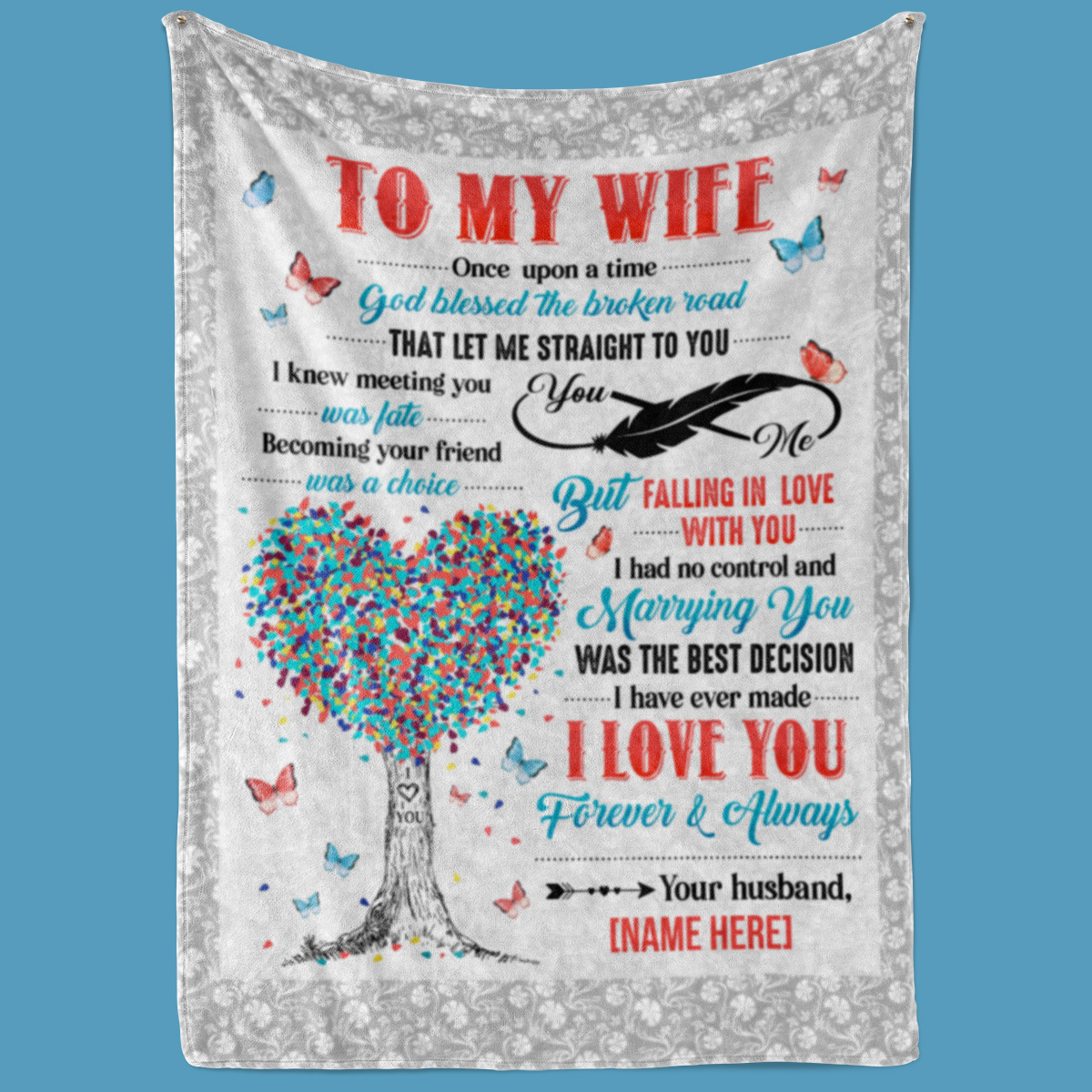 Shop Personalized To My Wife Once Upon a Time God Blessed the Broken Road Fleece Blanket – Premium Sherpa Blanket.