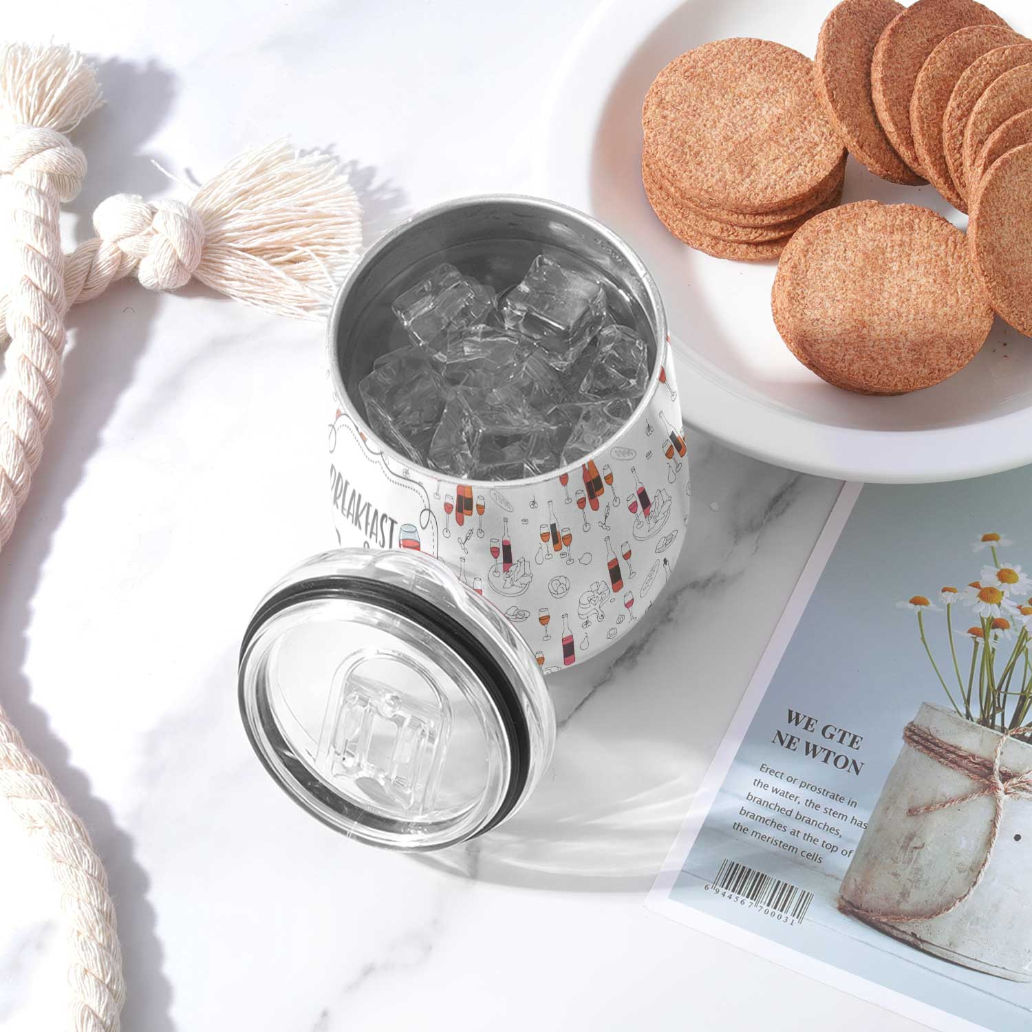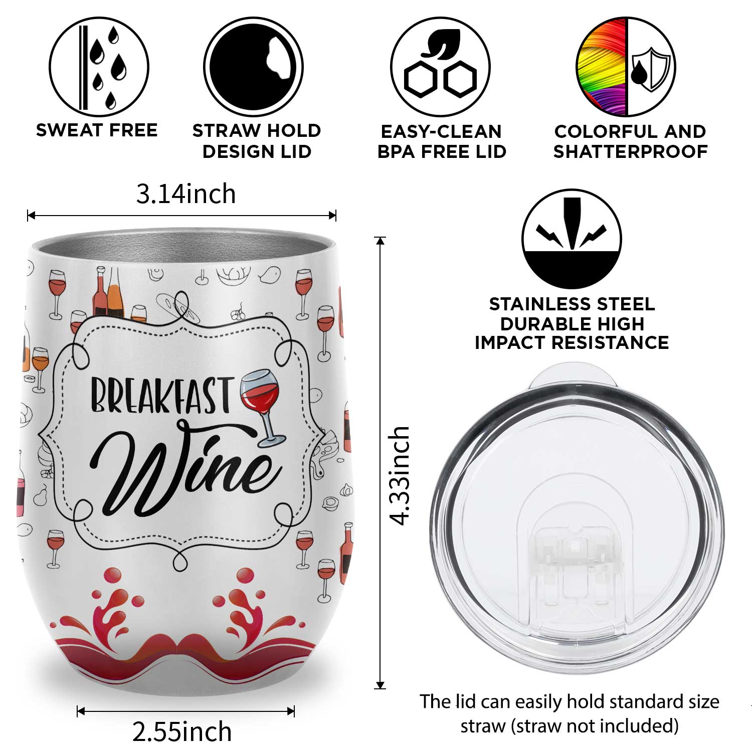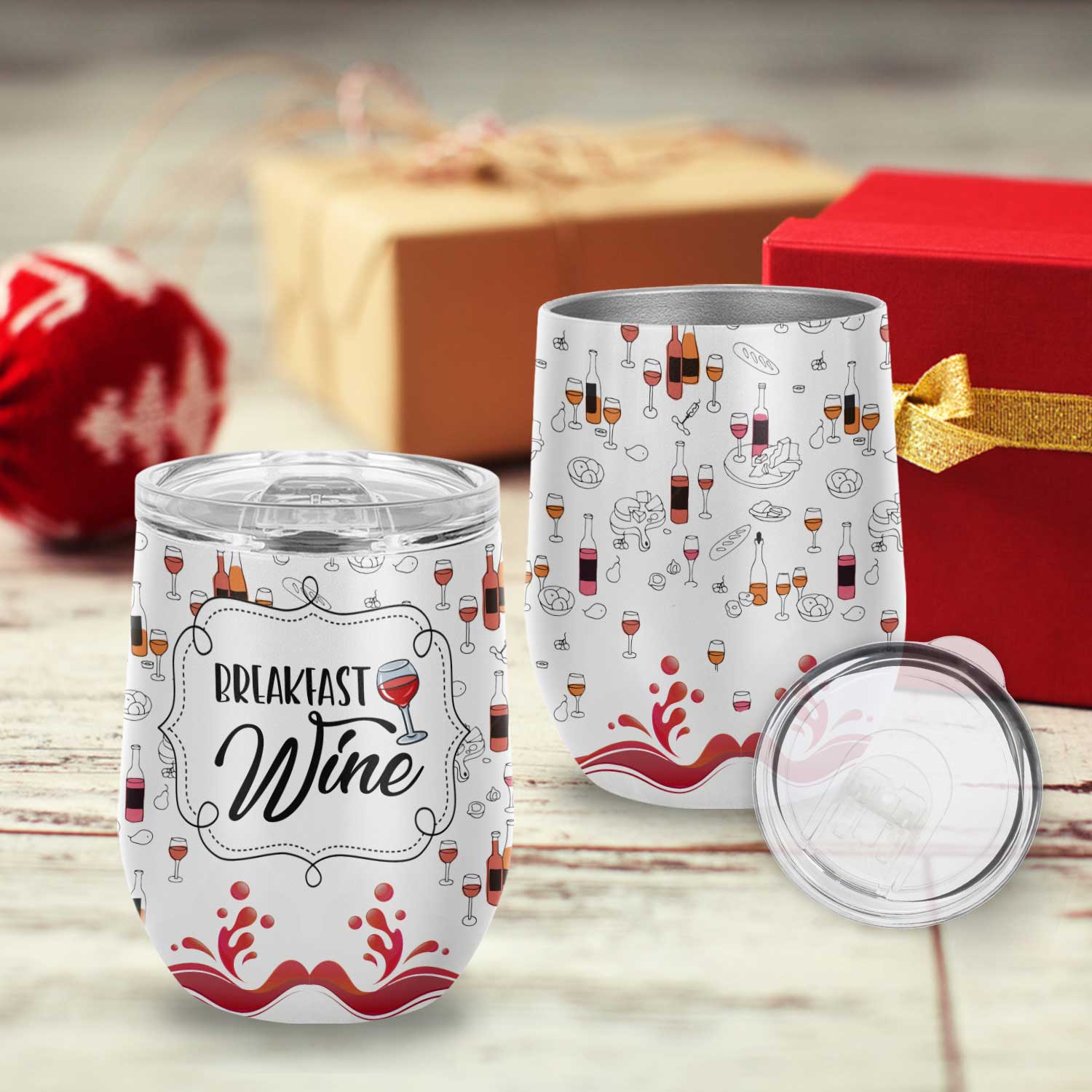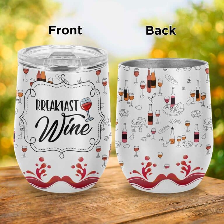 Let’s Shop Breakfast Wine Funny Wine Lover Gift Vacuum Insulated Cup – Wine Tumbler with Lid – Mom Wine Gift Cup!