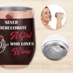Let’s Shop Never Underestimate A Girl Who Loves Wine Double Wall Vacuum Insulated Cup – Wine Tumbler with Lid!