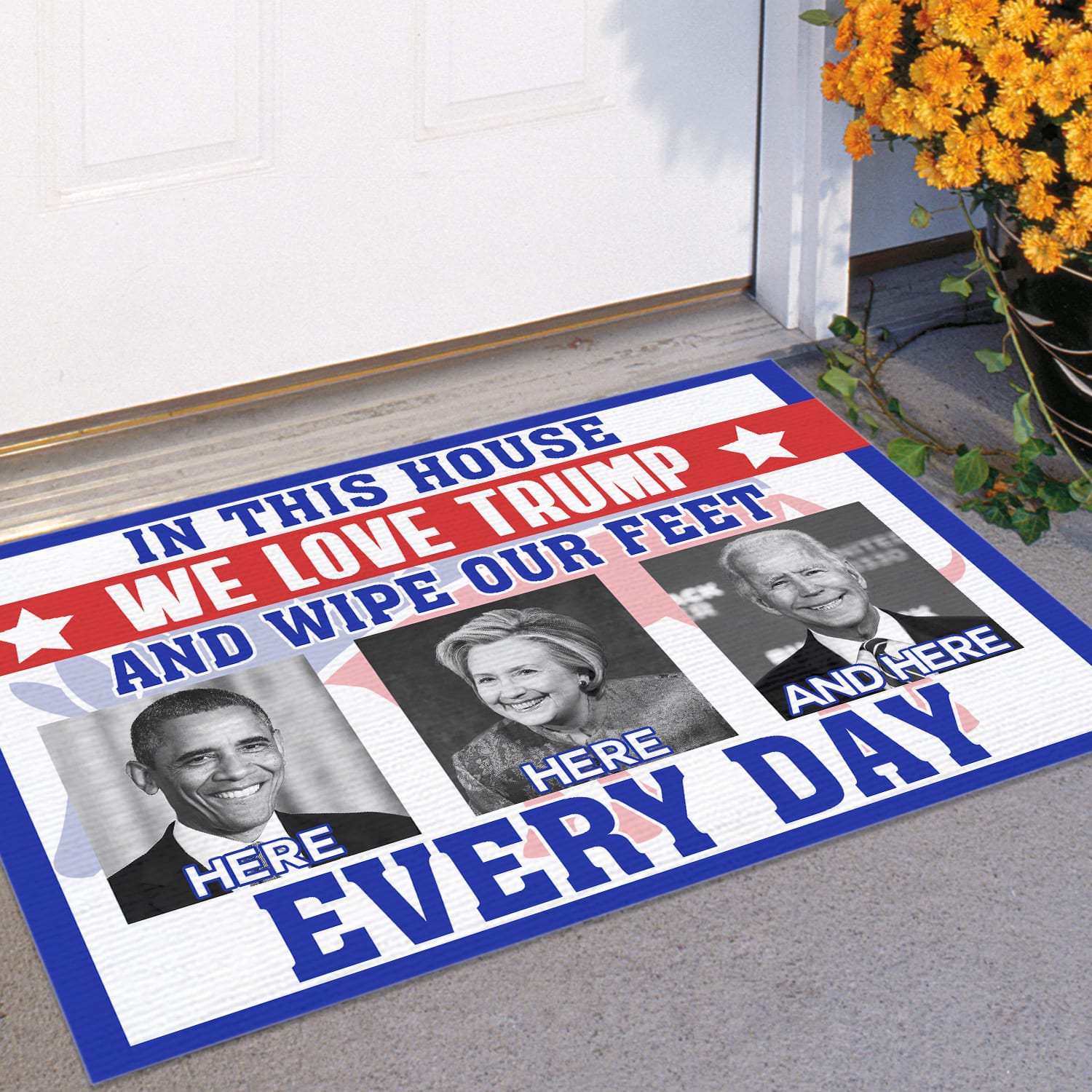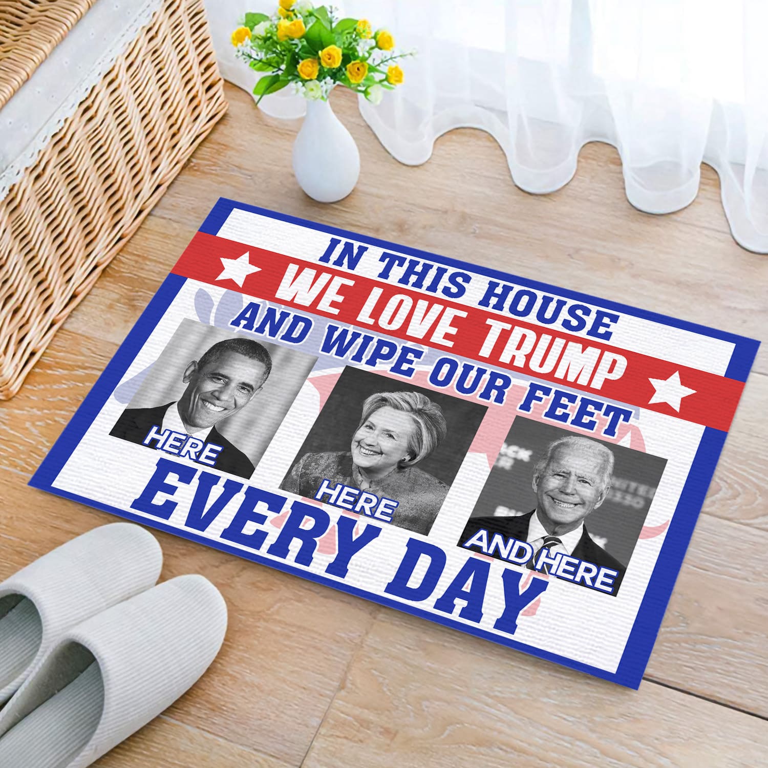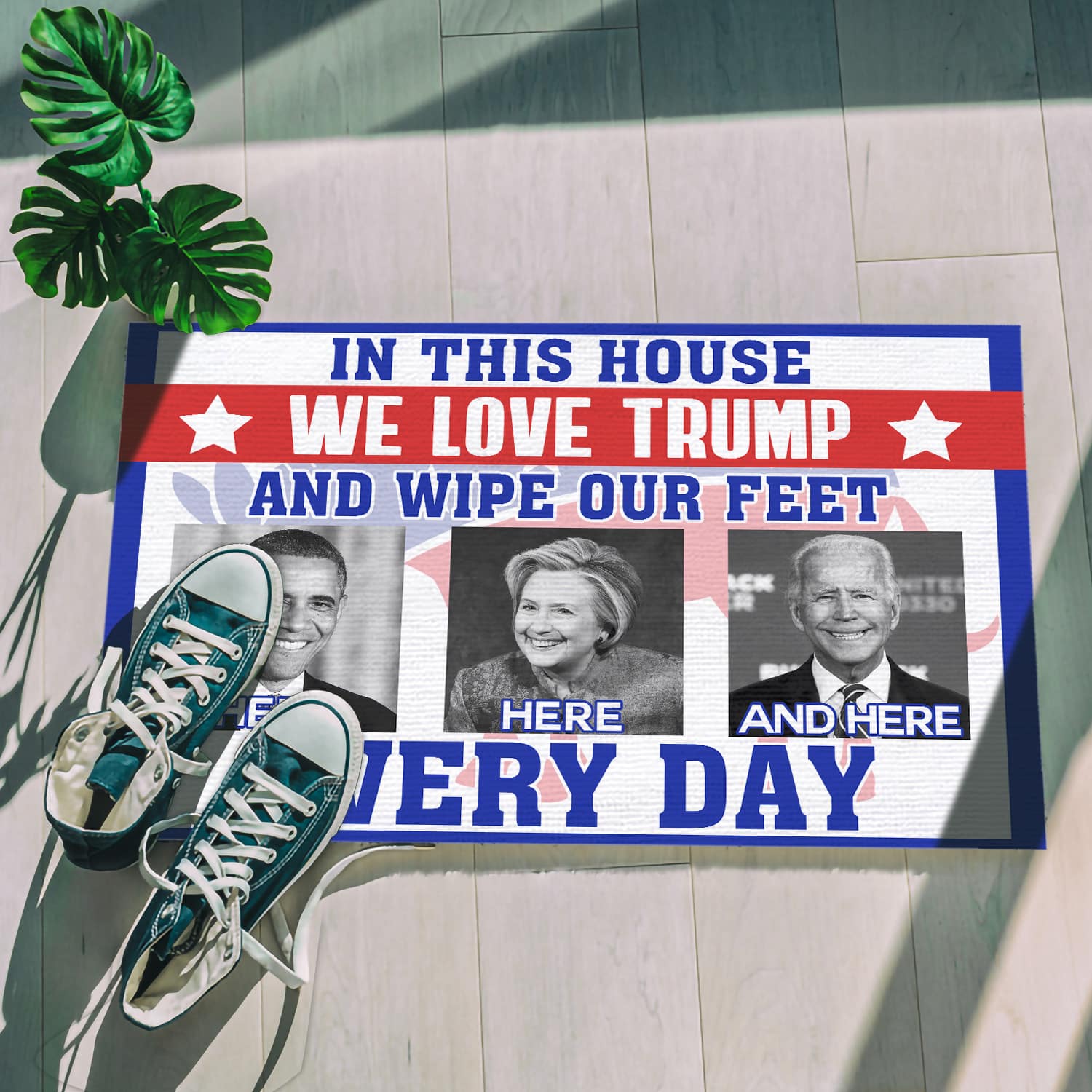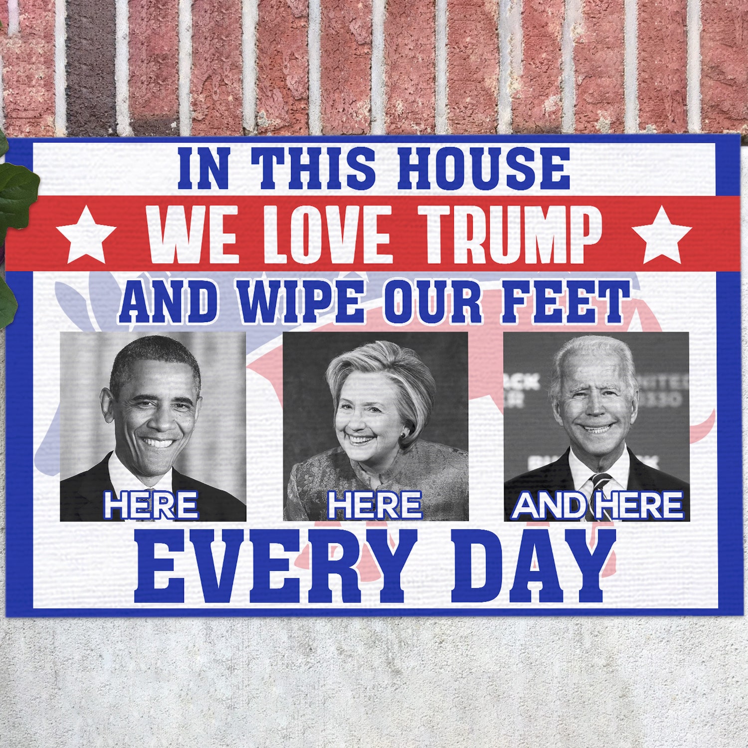 Let’s Shop In This House We Love Trump Wipe Feet Here Here and Here Every Day Indoor Outdoor Doormat!