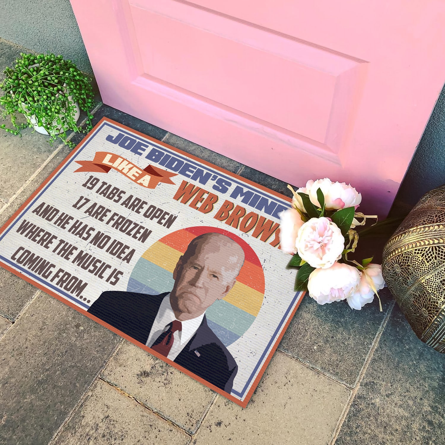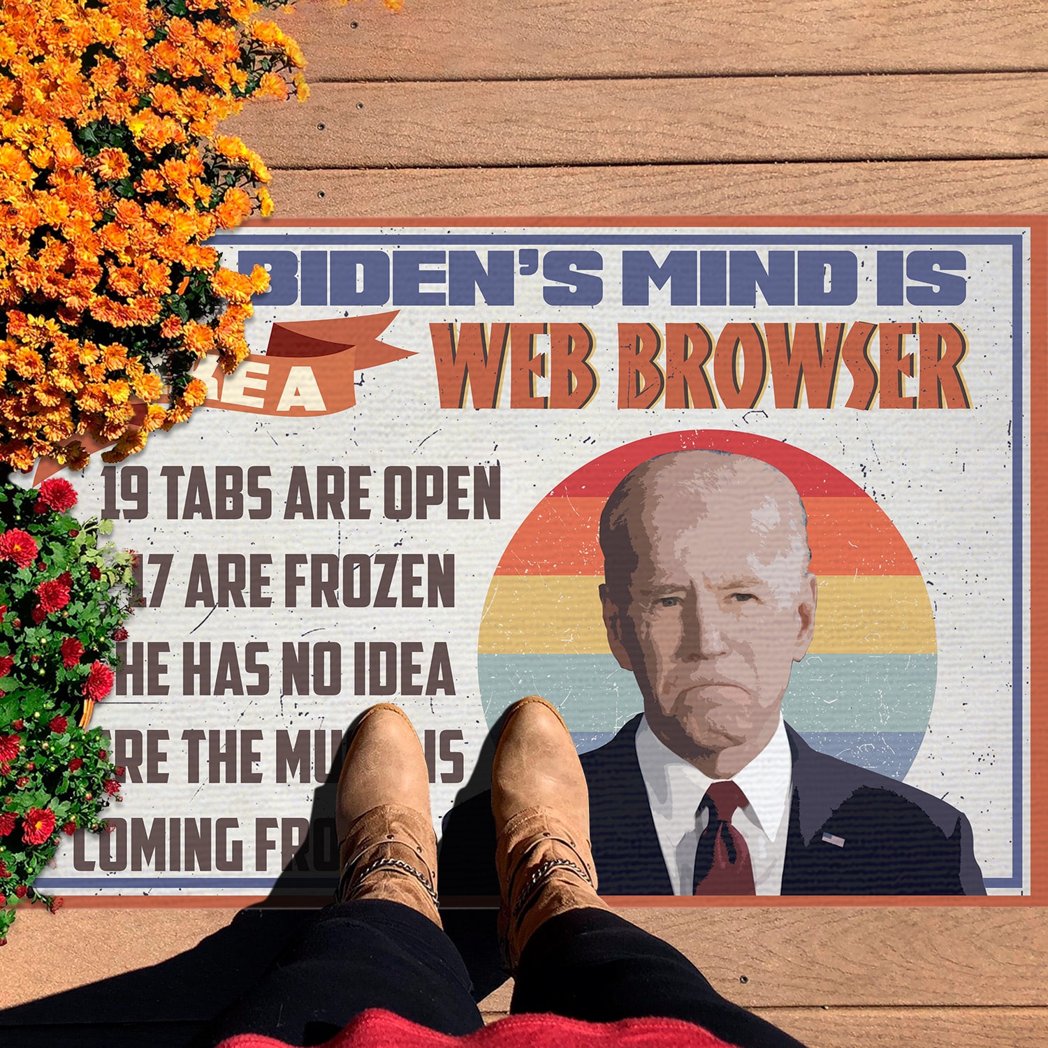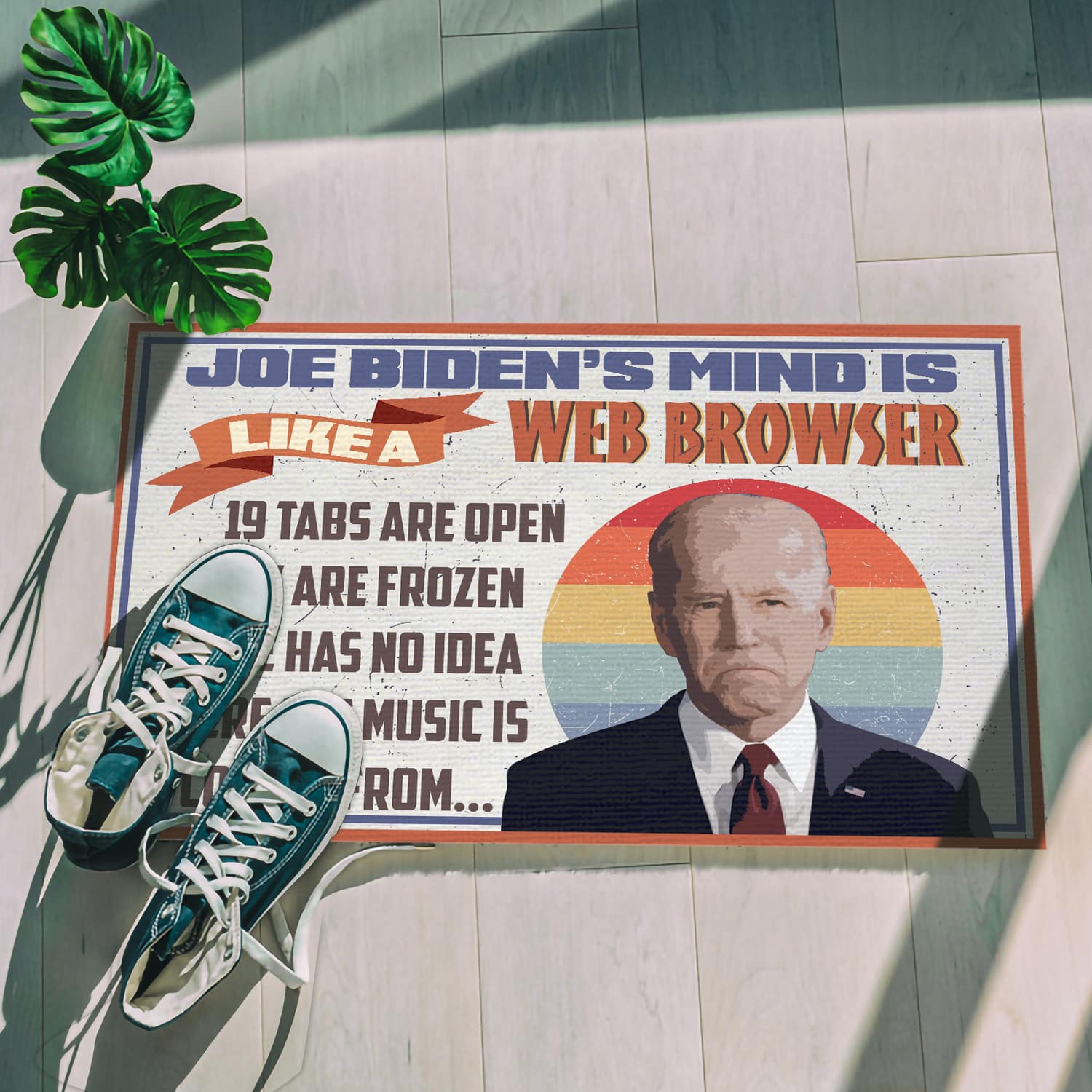 Let’s Shop Joe Biden’s Mind Is Like a Web Browser Indoor Outdoor Doormat – Funny Joe Biden Doormat!