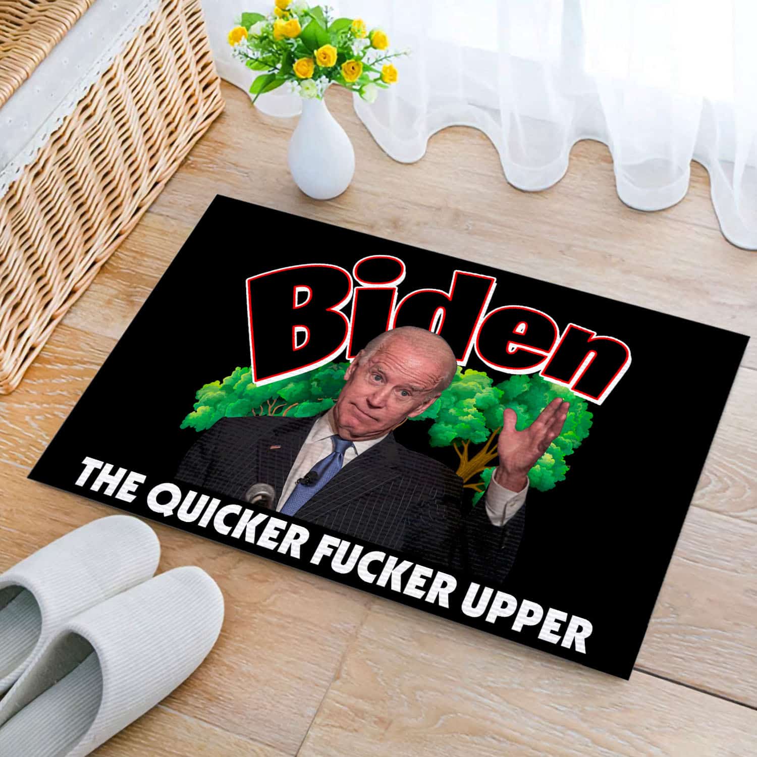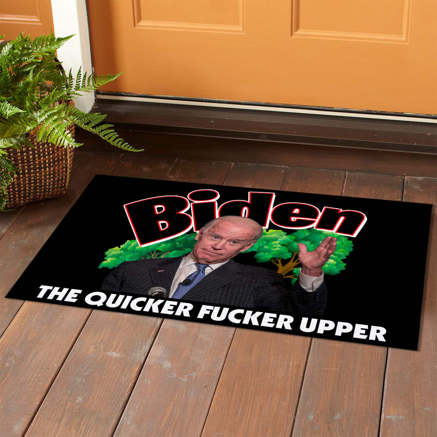 Let’s Shop Joe Biden The Quicker Fucker Upper Indoor Outdoor Doormat – Funny Pro Trump Anti Biden Door Mat!