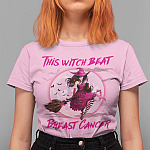 This Witch Beat Breast Cancer T-shirt – V-neck – Halloween Breast Cancer Awareness Witch Pink Ribbon Shirt