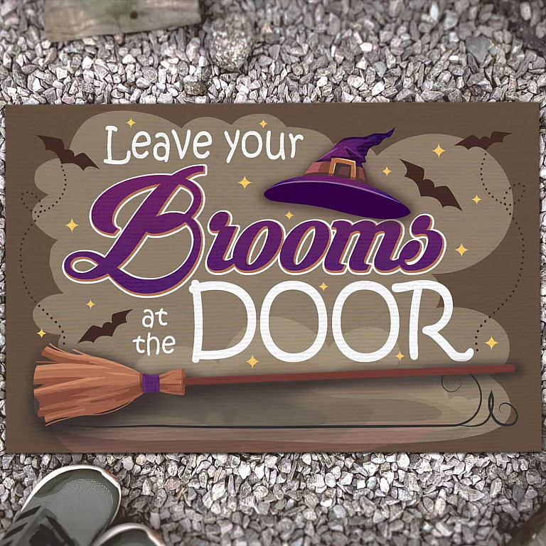 Let’s Shop Leave Your Brooms At The Door Funny Halloween Indoor Outdoor Decorative Doormat!