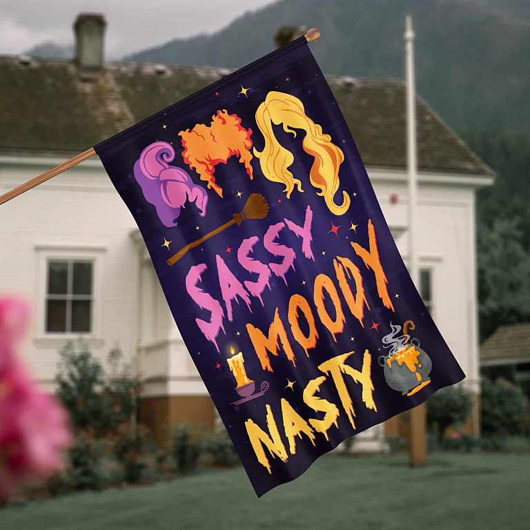 Let’s Shop Sassy Moody Nasty Sanderson Sisters Decorative Garden Flag – Indoor Outdoor Flag – House Flag!
