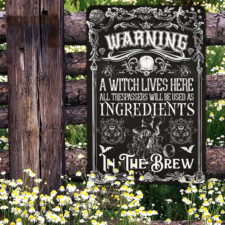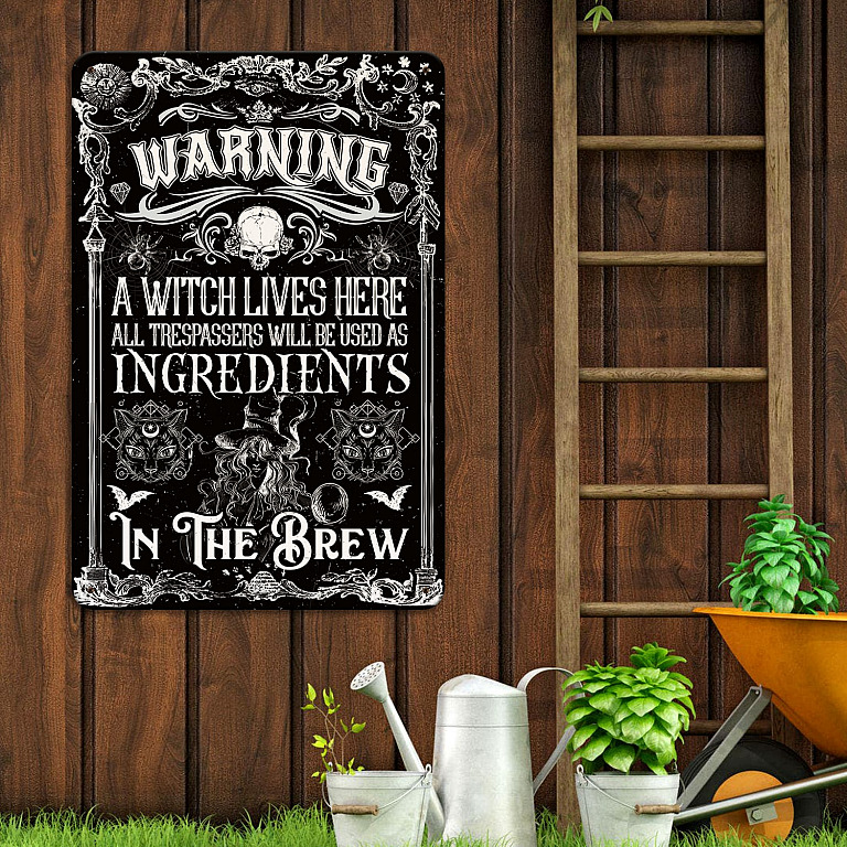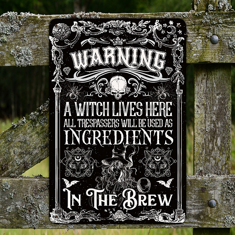 Let’s Shop Warning A Witch Lives Here All Trespassing Will Be Used As Ingredients In The Brew Gothic Decorative Metal Sign – Indoor Outdoor Decor!
