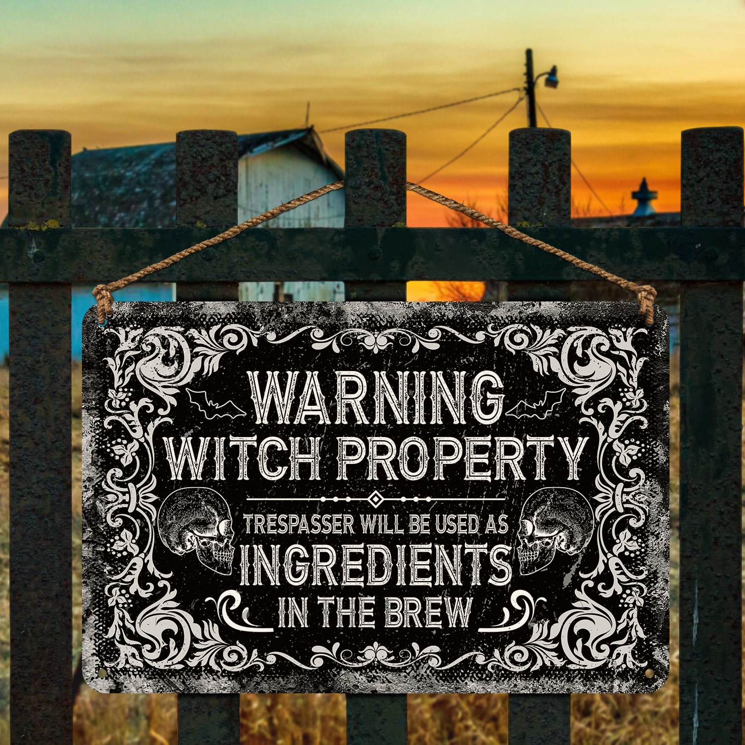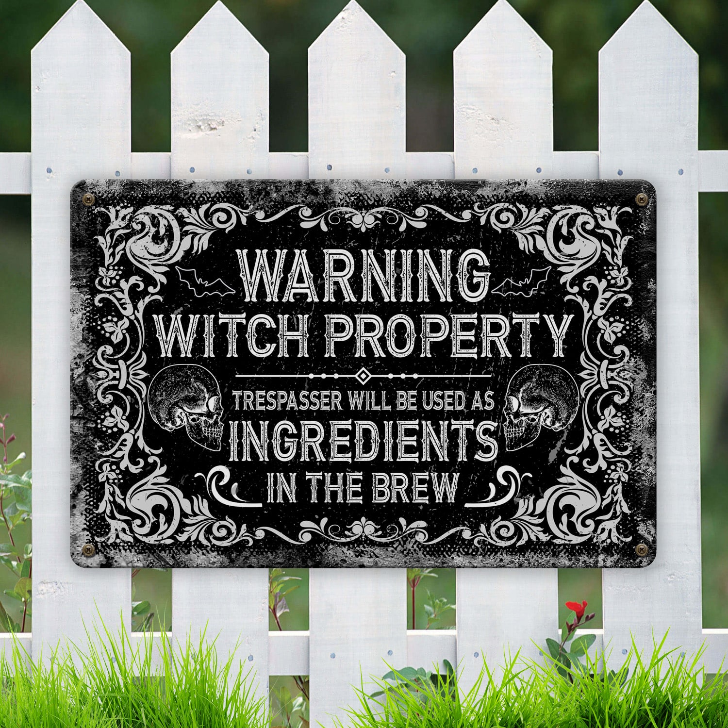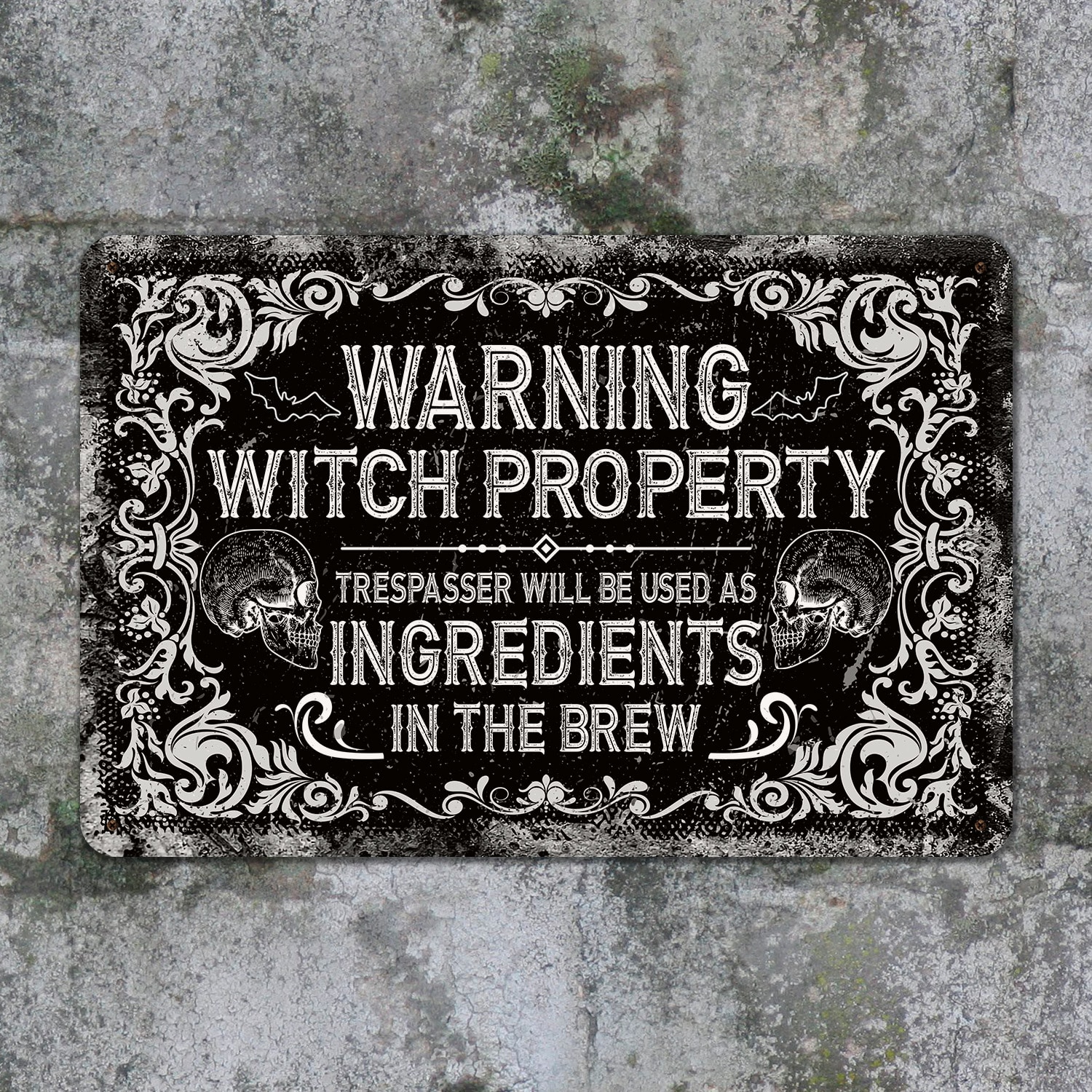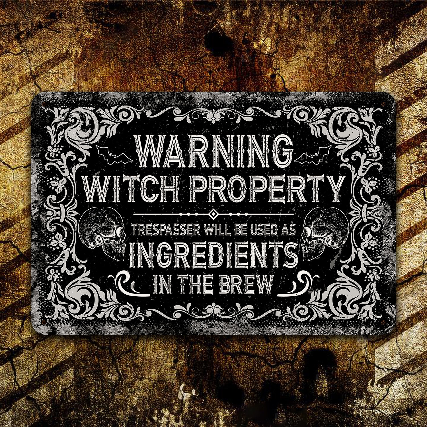 Let’s Shop Warning Witch Property Decorative Metal Sign – Halloween Witches Indoor Outdoor Decor!