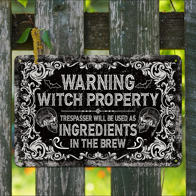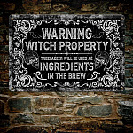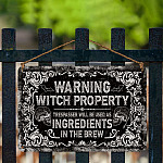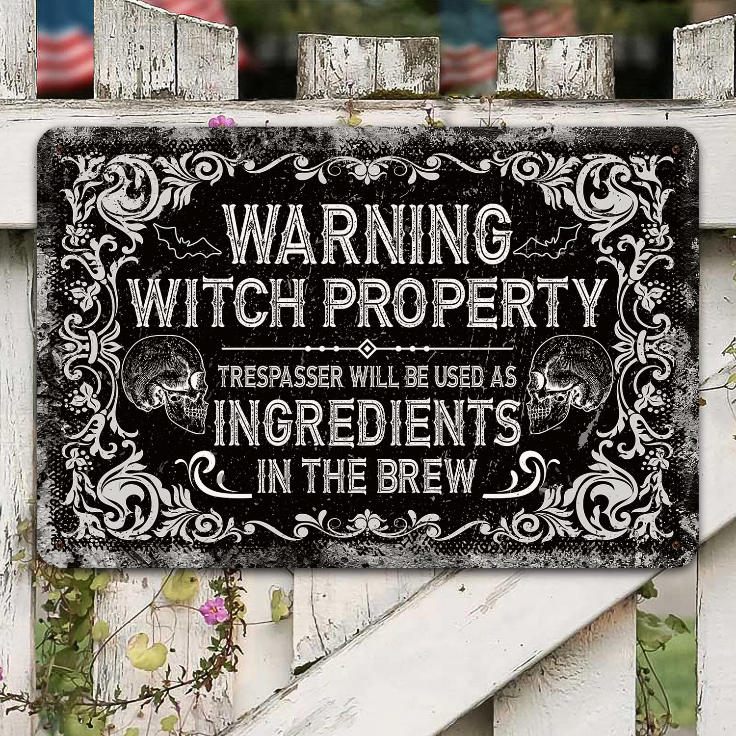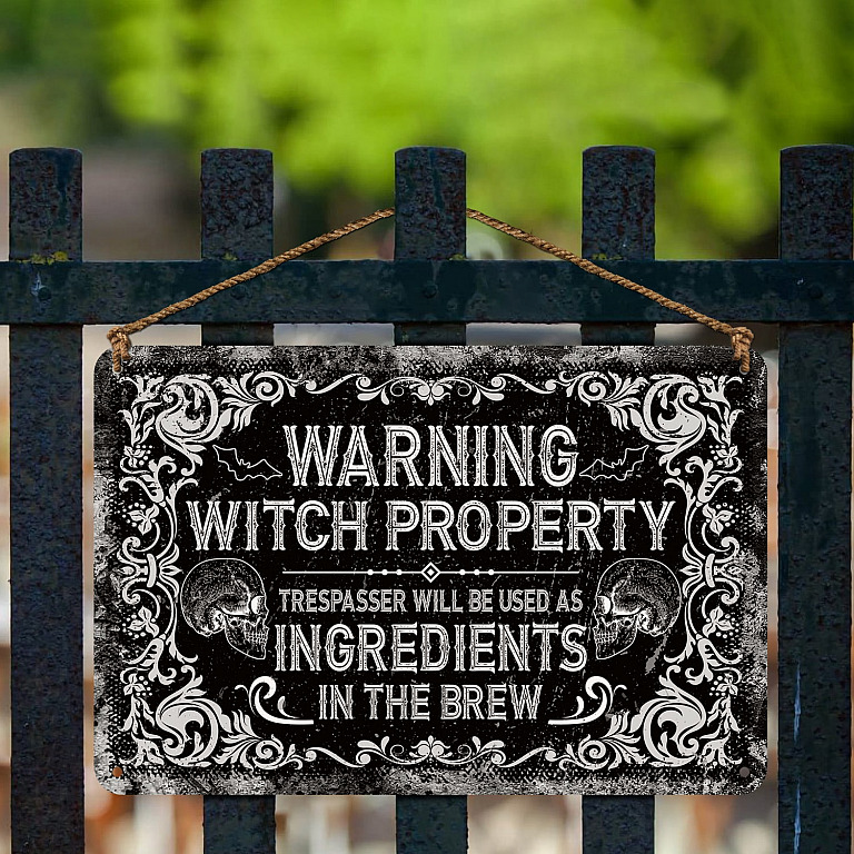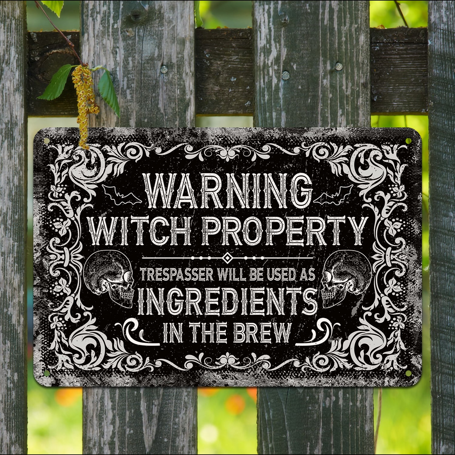Let’s Shop Warning Witch Property Decorative Metal Sign – Halloween Witches Indoor Outdoor Decor!