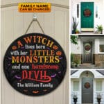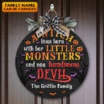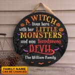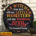Let’s Shop A Witch Lives Here With Her Little Monsters and One Handsome Devil Personalized Door Sign – Front Door Halloween Wooden Door Hangers!