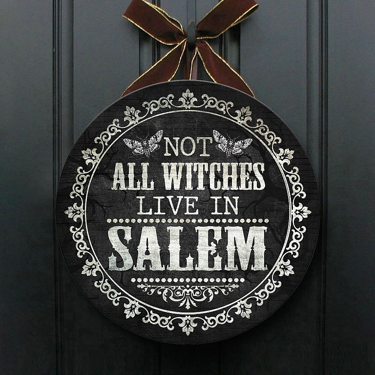 Let’s Shop Not Every Witch Lives in Salem Decorative Circle Wooden Door Sign – Front Porch Sign Indoor Outdoor Decor Farmhouse!