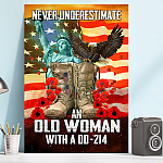 Let’s Shop Never Underestimate an Old Woman with A Dd 214 Framed Canvas Prints – Unframed Poster!